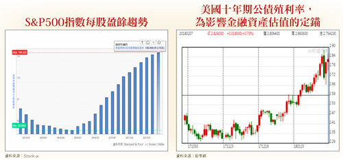 美股經過大跌又強彈後,波動幅度可望逐步緩和,市場籌碼將進入沉澱整理期,投資人心理狀態也會相對趨於理性。觀察美股目前的位階,道瓊指數、S&P500指數、NASDAQ指數、費城半導體指數皆處於季線附近震盪。技術面的均線開口若要收斂都需要時間調整,顯然,就指數而言,多方急躁不得,否則事倍功半。基本面趨勢向上不變 改變的只是市場氛圍現階段首要工作就是回歸基本面的檢視,元月下旬國際貨幣基金(IMF)公布的「世界經濟預測」報告,將二○一八年全球經濟成長率上修○.二個百分點成為三.九%,是二○一一年成長最快的一年。減稅也使美國的預估經濟成長率上修○.四個百分點成為二.七%;IMF也將歐元區二○一八年經濟成長上修○.三個百分點成為二.二%;日本則上修○.五個百分點成為一.二%;中國上修○.一個百分點成為六.六%。由以上數據可得知今年全球的景氣明確向上,普遍優於先前預期。身為全球領頭的美股,該特別關注其企業獲利概況,因為獲利增長動能直接攸關整體股價指數的走勢,尤其在近期美股快速回檔之後,倍受市場關注。日前高盛策略師David Kostin在最新一份報告中表示,受美國強勁的經濟增速支持,今年美股上市公司企業盈利將增長一四%,其中五%的增長來自稅務改革;稅改、油價反彈和美元走軟都是相對有利於企業盈利的良好條件。換句話說,若先拋開美股目前的位階不談,美股的基本面趨勢向上不變,近期唯一改變的只是市場氛圍。投資人因多項優於預期的經濟數據而增強了對FED加快升息節奏的擔憂,公債殖利率飆升壓抑了股市估值,加上市場已累積了豐厚的獲利,終於觸發了這波股市回檔。