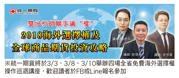 台灣出現民眾趁漲價前搶購衛生紙奇觀,其實大宗物資價格漲跌與我們生活息息相關,隨著全球景氣持續升溫、需求強勁,同時各國政府紛紛轉向降低稅收,並提高基礎設施支出以刺激經濟,其帶來的通膨副作用,加上長線弱勢美元更推升原物料行情看漲,衛生紙漲價或許只是前菜,今年大家對於物價上漲可能會很有感。而從投資的角度,敏感的投資人相信也已先在股市中觀察到原物料或民生類型個股,表現穩中透強,我們可以定調二○一八年一個重要操作方向,就是大宗物資原料期貨如農產品、能源或典型的抗通膨商品黃金,都是相當值得關注的標的。農產品期貨主要以黃豆、玉米、小麥為代表,這三個商品從去年第三季低點迄今都打了相當大的一個底部,並呈緩步上揚、均線多頭排列態勢,且在CFTC大額交易人報告數據,近期投機法人也以偏多布局為主,後勢看漲。不過這類商品國人較少參與,筆者建議可改用選擇權來切入市場,以四月份小麥500買權為例,假設報價五美分,買進一口僅需5×50=250美元,且善用選擇權買方風險有限、高槓桿的特性,在可控制風險前提下抓住投資機會。再來看國人較為熟悉的黃金期貨與輕原油期貨。黃金近期陷入大區間盤整震盪,操作難度變高,後勢先看聯準會政策而定。這邊特別介紹NYMEX交易所輕原油期貨,其規格設計及大波動度,是相當熱門的當沖商品,從二○一七年迄今,輕原油走勢多呈現一波接一波,甚少盤整盤,也是選擇權買方策略布局熱區。二○一八年通膨全面來襲,但也處處充滿投資機會。月初的美股重挫與恐慌指數飆升,也揭示今年金融市場將是波動劇烈的一年,本文提到這些受惠通膨的商品,可採逢低偏多操作,也由於波動度上升,以海外選擇權買方策略來切入亦具有優勢。搶油、搶糧、搶衛生紙,投資人把更多元的交易工具與策略準備好,行情來時才不會「搶」輸別人。