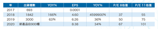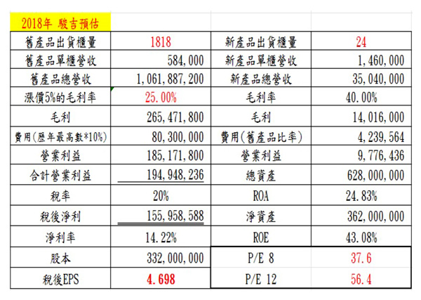 投資就是算與賭 沒有確定性僅有可能性2018年2月起應該可以看到每月營收YOY+50%以上持續到年底、進入第二季現有175櫃月產能應該就能看到滿載情況,而產能滿載局面下公司又調漲產品價格,要知道在成本與費用沒有增加多少情況下,漲價的絕大部分全都跑到淨利去了,加上超高毛利率與淨利率的熱浸鍍鋅釘產品預計2018/ Q1開始試做到下半年能漸漸放量,所以2018年駿吉每股稅後盈餘4.6元應該是有機會的,若用本益比8倍到11倍估值計算,2018年駿吉理論估值波動區間應該在37~55元;2018/Q4公司應該就能騰出手來將二廠的二期75櫃產能的後段製程設備購入並試產,進入到2019年公司的月產能就是250櫃(相較2018年+42%),預計全年最大出貨櫃數三千櫃應該是不成問題,至於2019年公司是否還會繼續調漲售價這還要再追蹤(但不可能降價),也就是說2019年光是增量部分的YOY就超過60%,所以2019年駿吉每股稅後盈餘推估在6.3元,若用本益比8倍到11倍估值計算,2019年駿吉理論估值波動區間應該在50~75元。注意!從這篇文章見刊起到2019年底止約22個月,目前駿吉每股報價37元,若2019年估值模型成立,白話文就是用22個月去等倍數利潤發生的可能性。至於2020的估計數字是否會發生,就讓我們繼續看下去!
