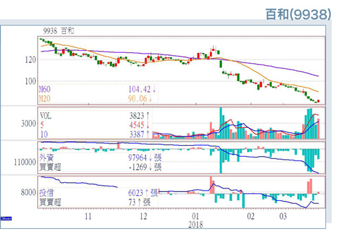 運動鞋服產業在二○一六年奧運年所帶動的營運高峰後,二○一七年迎來清庫存的調整期,整體營運表現普遍不如預期。不過,根據過去五次奧運經驗顯示,奧運後第二年成長性往往優於第一年,加上今年中還有世足賽,有望在新品備貨需求帶動下,為產業景氣加溫。隨著運動品牌廠訂單陸續回籠,國內紡織廠今年營運展望也普遍優於去年,進而推升股價開始自低點逐步向上墊高。近年快速竄紅的愛迪達,三月中所交出的財報及財測,也是相當樂觀,並激勵股價創今年新高。公司所給的今年營運目標,在不考慮匯率影響下,營收將可年增一○%,毛利率則增加○.三個百分點至五○.七%,獲利成長一三~一七%至十六.二~十六.八億歐元。由於今年展望強勁,管理層將二○一五~二○二○年獲利年複合成長率預估值,由二○~二二%上修至二二%~二四%,讓市場對股價後市也多給予正面的評價。預期國內相關鞋服供應鏈,今年營運將受惠愛迪達的強勁成長動能,而球鞋供應鏈又會優於運動服供應鏈(二○一七年第四季愛迪達球鞋營收成長一七.二二%,遠高於運動服的成長二.七三%,顯示該品牌球鞋銷售成長性優於運動服的趨勢仍在)。目前愛迪達營收占比最高的(近三成)百和(9938),有望成為最大受惠者。目前愛迪達已將一片式結合四面彈布料,用於比足球鞋規模更大的跑鞋市場,UA、Puma及Reebok等新鞋款也有機會採用,增添長線的成長動能。預期三月起營收會明顯回升,第二季進入旺季後,營運動能逐步增強。