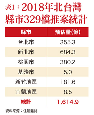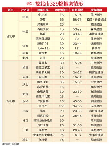 新聯陽實業董事長室特助洪承表示,由於今年底有九合一選舉,不少建商會集中在上半年推案,故三二九檔期會很熱鬧;而雙北市的推案量約有三、四千億元,其中,新北市因江翠北側、新店央北及土城暫緩發展等三大重劃區的推案將非常多。《住展雜誌》調查指出,今年北台灣的三二九推案預估量為一六一五億元(表一),比去年實推案量一八二九億元減少一成左右,也比前年的二一三○億元,連兩年量縮。企研室經理何世昌分析,從好的方面看,供給量不至於失控,成交價較能守在相對穩定的水位,但從壞的方面看,意味著建商多看淡近期市場,心態較為保守,所以不敢大舉推新案。他說,雖然買氣已經回升,但對建商來說,那是去年降價、讓利,「割肉」換來的,除非今年願意跟進降價,不然若想賣高價,卻對市場沒信心,那麼土地開發能延就延,或者繼續以去化手上餘屋為重心。不過,他也談到,由於去年底至今年初,建商普遍感受到民眾不再看壞房市,故台北市建商推案有重回大坪數的情況。何世昌指出,雖然「One Park Taipei信義聯勤」、「Diamond Tower」、「冠德信義」與「陶朱隱園」等「F4」指標豪宅仍缺席,但台北市三二九檔大坪數案量占比已有提高的跡象,如「帝璽」、「冠德羅斯福」、「森城大院」、「Jade 12」等案,案量占北市三二九檔約四成左右,反而比小宅案量還多。主因是北市有些建商警覺近年小宅供給量過大,恐釀過剩危機,再加上有些業者評估換屋族群已經出籠,所以想要搶攻這塊市場。