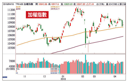 自美中貿易戰開打以來已經將近一個月,美股的走勢大致上和我們之前的看法差不多,就在季線至年線之間整理,台股目前則仍在一○七○○至一一○○○點上下狹幅震盪。因此,針對目前市場所擔心的美中貿易戰和對敘利亞空襲地緣政治事件,歷史統計經驗都很明確告訴我們,只會影響短線,而不會改變今年景氣仍向上的中長多格局。短線而言,四月十九日台積電法說會就會關係到台股的短期走勢(本欄四月十七日截稿),短期受制於比特幣挖礦熱退潮影響,中國挖礦機公司比特大陸(Bitmain)對台積電砍單,第二季持平或微幅衰退就看蘋果iPhone 9訂單出貨的銜接力道,但也間接宣告先前飆漲的挖礦股至少短期間沒戲唱了。短壓一一○○○至一一二○○點因此,除非台積電法說內容遠優於市場預期,台積電股價整理結束帶動指數上攻,否則指數短期仍要整理,預計四月下旬至五月中整理結束上攻,準備來突破前高一一二七○點。短期壓力就在一一○○○至一一二○○點,下檔支撐強勢的話守半年線一○八○○點上下,弱勢則回測年線一○五五○點上下。大多數蘋概股的操作原則,就是買在淡季利空近尾聲時,而獲利了結在拉貨旺季利多時。所以我們在去(二○一七)年九月蘋果發表新機時,就領先市場建議獲利了結蘋概股,並反手放空多檔蘋概股下來。