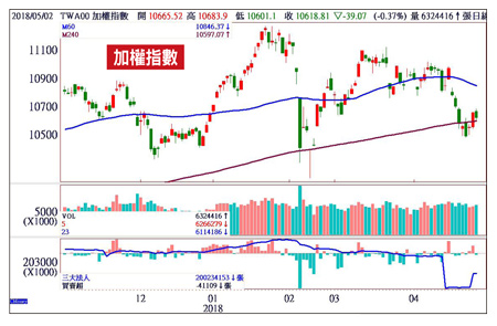 回顧今(二○一八)年台股的走勢,幾乎和我們事先所規劃的差不多,記得農曆過年前,在加權指數一一二五○點上下,全市場高喊搶賺紅包行情時,只有我們領先市場告訴大家短線要保守,避開一波千點回檔。二月九日大盤殺到一○一八九點時,又肯定告知投資朋友這是波段相對低檔,年後將軋空讓融券補在相對高檔。景氣年中沒有提前反轉 原物料股可望走出一波行情關鍵的四月中旬,在一○九六○點上下再次提醒大家,軋完空後小心反手殺多來反映第一季財報利空。而當上周指數急殺破年線來到一○五○○點上下時,我們又在全市場恐慌害怕大砍融資時刻,天天盤中透過Line@告訴大家,年線之下短期不要太偏空,四月三十日果然馬上就一根中長紅大漲上來。因此,針對台股後市看法仍不變,短線仍要整理幾天至五月中旬前後第一季財報利空出盡,然下有年線上下撐,而上有季線上下壓,整理區間應在一○四五○點至一○八五○點。之後五月中至七月就要看蘋概股財報利空出盡後,蘋果今年拉貨力道,以及蘋概股彈升的空間,將是指數能否再上來突破一一二七○點的關鍵。近期美國公債殖利率飆高,將加速升息和通膨蠢蠢欲動,加上長線景氣循環的末端就是通膨上來,如此一來,將有利於水泥、塑化、鋼鐵、BDI指數等報價上揚,有助於原物料族群今年獲利的提升,加上許多個股目前股價都在年線上下打底,只要景氣沒在今年中提前反轉,則原物料類股很有機會走出一波行情。