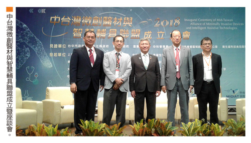 二○一八中台灣微創醫材與智慧輔具聯盟平台五月二日上午於台中市政府舉辦啟動儀式,約百名來自產官學研醫代表齊聚一堂,包括台中市長林佳龍、科技部中科管理局副局長許茂新、彰化縣副縣長林明裕、南投縣副縣長陳正昇、苗栗縣衛生局長等官方代表見證聯盟成立,中亞聯 大暨醫療體系董事長蔡長海、秀傳醫療體系副總裁古鳴洲、中興大學校長薛富盛以及中台灣生醫輔具相關大學產業代表,進行聯盟儀式。林佳龍表示,台中擁有大肚山六十公里黃金縱谷,產業聚落完整,有精密機械智慧製造的基礎,未來微創醫材及智慧輔具可以直接研發、生產,再加上醫療水準、ICT產業及各大醫療體系提供臨床需求及測試,正是發展微創醫材與智慧輔具最好的場域,本次聯盟的平台主要成員有中亞聯大、秀傳醫療體系、中興大學及中台灣的生醫相關大學、醫院及產業加入,成員本身均有產業技術及合作模式,是強強結合的最佳典範。舉例來說,目前中國醫藥大學建置精準醫學中心、3D列印醫療研發中心、大數據中心、人工智慧中心,同時積極發展「台中水湳國際健康產業園區、秀傳醫療體系的亞洲遠距微創手術訓練中心」邁入十周年,也同時展開微創治療的研發與轉譯,特別是醫學影像的部分,獲致了相當的成果。依此本聯盟整合中彰投苗產業資源,未來期盼中部地區成為微創醫材與智慧輔具的重鎮,期盼以區域聯盟方式打團體戰,將研製成果輸出國際。一○七年四月行政院生醫產業創新推動方案核定中部以微創醫材及智慧輔具為發展主軸,二○一七年五月十三日由台中市政府舉辦「二○一七前瞻生技健康福祉提升競爭力」論壇,希望這一個國家隊的概念,結合各自優勢和強項,在微創醫材和智慧輔具兩大領域,發展出能夠提供醫療與照顧創新的模式。