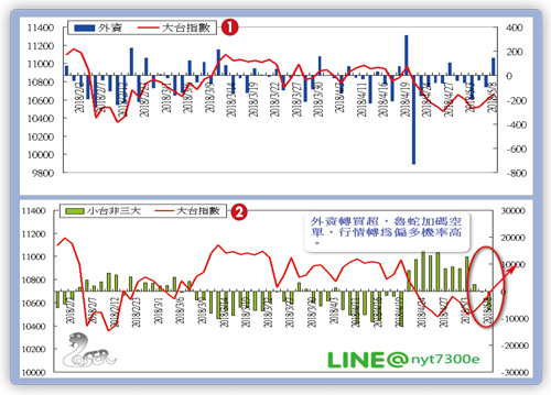 觀察近期走勢,只能用有驚無險四個字來形容,行情走在每每跌破一○五○○附近都會有個止穩訊號,本周二(五月八日)更是收個長紅K化解了指數持續下探的行情,如同前次分享,指數到一○五○○這位置出現明顯的止跌訊號,這邊在技術面上而言,會是以中性轉為偏多看待。就籌碼來看,如圖一,外資在期貨與現貨合計來看是呈現賣超,但幅度有縮小狀態,這幾個交易日賣超多於買超。但就外資買賣趨勢來看,是有賣超縮手狀態,值得注意的是,五月八日外資買超出現近期大量,有機會轉變賣超趨勢,因此籌碼上溫拿是偏正面看待。而魯蛇近期非常明顯是買超轉賣超(圖二),就整體籌碼面而言,兩者皆呈現偏多。綜合以上,換成合適的選擇權的操作,就技術面與籌碼狀態來看,以偏多走勢為主,建議操作COVER CALL買進期貨同時賣出買權收取權利金。