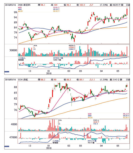 最近的被動元件、矽晶圓,就猶如倒得太快的生啤酒一樣,半杯酒半杯泡沫,雖說股票不炒不會漲,但藉由一大堆的利多加上籌碼是由短線客構成的漲勢,有看籌碼的一看便知,既然知道當然就只能作短,而非看著一堆的利多去用基本面來評估此類型的漲勢股票,身為一個好的投資者,除了要會挑到飆股之外,更要懂得各種漲勢中透露出來的手法。以中美晶(5483)為例,五月十五日的MSCI公布權重調整之前,前幾天市場派還放出風聲會納入中大型股,結果出來並沒有任何調整權重的動作,要說是猜錯嗎?那為什麼在公布的前一天五月十四日,有些本土券商的分點丟出這麼多的籌碼呢?檢視個股投資價值也許是這些人並不想賭MSCI,又或許是漲多創高後的獲利下車,事實已經不得而知。但身為一個好的投資者,在面對這樣的情況時,藉由籌碼的角度,看到有人供應籌碼的狀況時,自然就該提高警覺了,不是嗎?股票市場爾虞我詐,籌碼雖然不能解釋全部的情況,但比起只單純看技術面的方式來說,更多了一分的驗證與分析,不是嗎?而隨著指數又來到接近「萬一」的心理關卡,漲多休息加上遇壓很正常,除了降低持股檔數之外,更要思考的是接下來什麼股票會補漲,如果要走出回升波,業績好股一定要漲,一直用炒作的方式來拉某些股票,只能維繫短線上的人氣,而非根本。而在連漲之後,現在檢視個股投資價值是該做的功課,因為這些有價值還沒漲到的股票,成為資金避風港也很合理。供不應求 淡季不淡以宜鼎(5289)、南亞科(2408)為例。宜鼎第一季EPS三.三三元,比起去(二○一七)年同期的一.六二元大幅成長一倍以上,四月份的營收則是年增三一.四二%,還維持在成長的態勢上,五月份應該也不至於出現大幅衰退的情形,隨著物聯網、安全監控、資料中心、車用電子等應用持續轉強,目前還呈現供不應求的情形,股價短線稍有漲多,但中長多格局沒變。南亞科第一季EPS二.三九元,較去年同期的一.一九元也是成長一倍以上,第一季到第二季為傳統淡季,但一到四月的累計營收成長率已來到六○.○一%,有淡季不淡的情形,難怪自四月份以來,外資在調節台股現貨的同時,卻持續買超了南亞科三萬多張,與宜鼎一樣都是短多中多長多格局,在月線沒破前偏多思考。