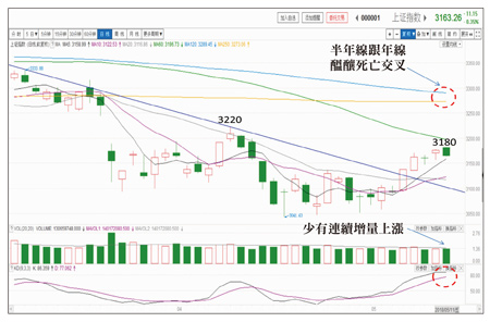 五月十一日上證指數下跌一一.一五點,收三一六三點。量縮收小實體陰線,盤中三一八○高點逼近季線的三千二百點壓力,保守心態下的賣高買低操作行為,導致當周領漲的醫療板塊遭到逢高獲利了結賣壓而收跌,雖然有鋰電池相關板塊的接棒上漲,但是資金轉換的過程並不順,因存量資金的博弈過程,缺乏新的買盤承接醫療板塊的獲利回吐賣壓,而影響了整體多頭的上漲氣勢,以至於新的強勢板塊(鋰電池相關)的領漲,最終並沒有讓大盤收陽線,短多的氣勢略微轉弱。量能低迷 漲跌慢速進行所幸收盤仍在五日均線之上,短多仍有機會補量上漲。只是後續面對季線三千二百點壓力,如果繼續維持四月以來這種低迷的量能的話,那麼大盤的上漲或下跌的速度都不會太快,因此多留意板塊或個股的動向,可能更容易抓住投資機會。板塊觀點引動有色金屬、貴金屬等板塊上漲的原因,來自於五月十日美國四月核心消費者物價指數的不如預期,COMEX黃金強勢反彈站上一三二○美元。領漲的是華友鈷業、寒銳鈷業、深圳新星、璞泰來、藍曉科技、湖南鹽業等,大都跟鋰電池重要原料的「鈷」有關,不過真正領頭羊是鋰電池相關的贛鋒鋰業、天齊鋰業、杉杉股份、當升科技等指標股,都是均線糾結踩在腳下,然後向上突破創波段新高的個股,即將迎來鈷的傳統旺季,可留意特斯拉(Tesla)的上海超級電池廠落地的訊息。另一個盤面的熱點就是短視頻板塊。號稱能夠挑戰微信流量的「抖音」,在二○一六年九月上線,今年第一季度的下載量達四五八○萬次,超越Facebook、YouTube、Instagram等,成為全球下載量最高的iPhone應用。二○一八年二月十九日至三月十四日,抖音持續霸佔中國App Store單日下載量榜首二十一天,一舉打破了《王者榮耀》二○一七年七月初創造的蟬聯十八天App Store下載量第一名的最好成績。先前日刊關注的真視通與萬興科技就是屬於抖音概念股,其他相關個股還有:引力傳媒、網達軟件、科達股份、人民網、網宿科技、日出東方等。