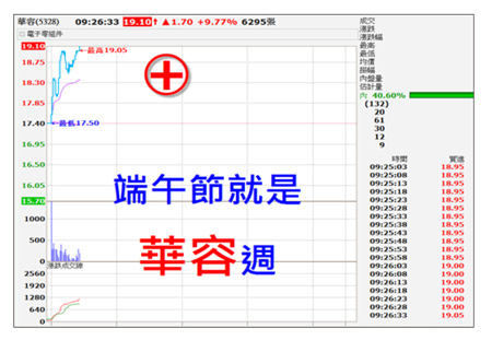很快的又過了一週,彭哥五月份開始在股市播種的科技族群股已經成熟長穗準備採收,這次示範完整的股票尋找起漲點、噴出、震盪、再噴出,著實讓許多投資人訝異。網路上時常可以看到很多投資人其實不敢正面面對這個行情來操作,大多都從盤後開始解盤,只要是想進場標的隔日開始噴出就會宣告自己持有股票,至於從何時進場、什麼價格、依據什麼條件來判斷訊號,都無法做一個明確交代。而這樣的進場方式只能給一個評語,就是投資上的魯蛇(敢說不敢做),那如何變成投資上的溫拿(敢做敢當)呢?彭哥給大家一個方向,就是學會做期貨的交易技巧,這樣你就能夠心無旁騖的尋找轉折明確進場,達到買到最佳起漲點的第一步。在期貨交易者的世界裡,最要求的就是動作敏捷及直覺反應,所以只要有任何符合進場的訊息,一定要在三至五秒時間內進行判斷及出手,所以為什麼我可以在近期這麼多的瘋狂飆漲股找到準確轉折起漲點並且執行進場,這就是多年來我交易期貨所訓練出來的行為。知道出手紀律如何改善之後,再來就是好的進場點,在彭哥好幾個月來每期周刊的分享示範轉折的起漲點,利用K棒及均線同步由下轉上的力道來讓股票容易推升,這就是在標準的多頭趨勢行情中,最簡單的判斷又是最強勁發動,也是彭哥在趨勢行情掌握大獲利的主要攻擊法則之一。這種行情不會每個月都發生,必須搭配題材及股價結構同步利多才容易發展,今天我們用一檔股票讓大家知道抓住轉折及進入連續漲停模式續抱,它就是華容(5328)。華容這檔股票很有意思的地方,就是它具有被動元件及電動車電池題材,近期就算被動元件龍頭國巨(2327)下跌,它依然能直挺挺的強勢拉上漲停;在被動元件題材炒不動時,就換電動車題材來接棒,所以它就容易成為市場最熱門的新寵兒。