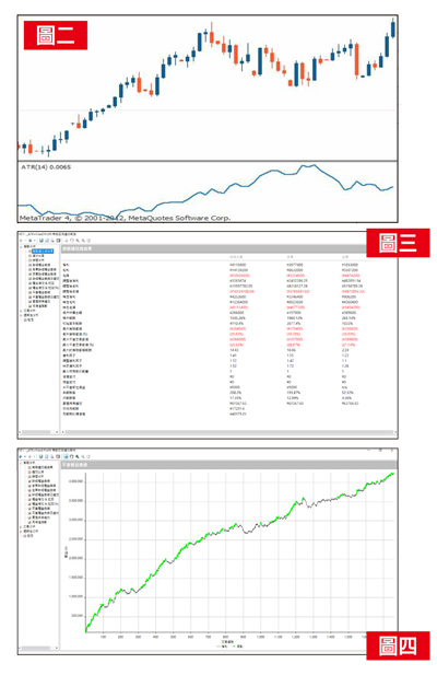 二、ATR操作重點ATR如同其他波動性指標,適用範圍廣,例如:(1)ATR在程式交易可以作為買賣點的計算公式,更有彈性與效益,例如在進出場點位,加上一個ATR值的倍數。If condition then buy next bar at進場點+ n ATR stop;符合condition條件,就下出限價單,等待盤勢觸及進場點位加上n倍的ATR值時,就自動買進。n值可以試著找出符合該商品最佳的n值,以得到最大獲益。(2)進場時機的判斷,當ATR值出現明顯上升,表示波動加大,可能是趨勢盤要開始的徵兆,是比較好的進場時機。如果ATR值漸小,表示波動開始變小,比較可能是進入盤整期,應該減少進出場次數。(3)ATR值可以作為停損點的依據,若要將停損點在不同的波動幅度下,有不同的點數,以因應不同盤勢,例如波動劇烈的盤勢,停損點數相對大一點,否則很容易就觸及停損,波動小的盤勢,可以設定較小的停損點數,用ATR值可以彈性的來計算停損點數,例如執行停損的點位是n ATR值,這樣就可以隨著盤勢波動而動態調整。(4)ATR值也可以作為加碼的依據,例如突破n ATR值時買進一份,到了(n+1)ATR再加碼買進一份,如此方式以分擔風險。(5)投資股票超過一支,投資標的物超過一種,ATR值可以做為分配資金的依據。不同股票或不同投資商品,會有不同的特性,也就是不同的漲跌幅度。如何平衡資金的分配,做最有效的利用,可以利用ATR值,將不同投資標的物的特性量化出來。將分配的資金,除以不同投資標的的ATR值,可以得出適合投資於該標的的具體資金有多少比例。三、ATR應用於台指期運用ATR來操作台指期,程式設定四倍ATR為Profit target,多單及空單停損點數為四十點。我們用二十年台指期的大數據驗證得到圖三與圖四的績效結果。圖三與圖四的大數據回測績效表,的確是驗證了ATR是個不錯的指標。ATR的應用範圍很廣,變形彈性很大,幾乎所有投資商品,都可以用ATR量化出波動的特性。從用作進出場的計算公式,到資金部位的分配管理,都可以使用ATR來得到最佳化比例。筆者也試著將ATR與其他指標組合,創造新的公式,也得到更好的操作績效。所以ATR確實是一個可以多加利用的好指標。