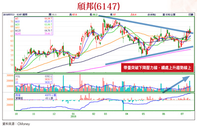 明年三鏡頭規格拉貨量增利多 股王大立光近期漲勢明顯突出股王大立光(3008)近期回到五千元高價,漲勢明顯升溫,成為帶動蘋概股最近二至三週亮眼漲勢的領頭羊。大立光近期股價漲勢突出的主因,除了來自中國手機品牌廠,高階旗艦機種「三鏡頭」規格,鏡頭拉貨量增加的可能利多原因外,儘管目前市場分析師大多研判,蘋果今年新機並不會搭載三鏡頭規格,但投資者卻已開始預期明年度新機款極有可能搭載「三鏡頭」。惟後市仍須觀察主要下游出海口客戶─中國手機品牌廠,後續應用於高階智慧型手機,「三鏡頭」模組拉貨力道強弱。除大立光外,近期同樣受惠蘋果年度新機問世在即,對包含台廠在內零組件供應鏈廠、IC封裝測試服務廠,拉貨熱潮開始升溫的基本面利多,有機會因此獲得營收業績、營運獲利強勁成長動能挹注的供應鏈台股,尚有頎邦、台郡等。蘋果新機全螢幕規格 利基型半導體封測股頎邦受惠台灣TFT-LCD驅動IC封裝測試廠頎邦,儘管上半年受到客戶調整庫存動作,以及新台幣兌換美元匯率升值等影響,導致獲利表現不如市場原本預期;但第二季以來,整合觸控功能的面板驅動IC(TDDI)、全螢幕面板驅動IC接單強勁下,因此帶動薄膜覆晶封裝(COF)、後段測試等製造、服務產能持續吃緊,使得頎邦自五月份起三個月期間,陸續調漲COF、金凸塊、測試等服務代工價格,五%至一○%漲幅。對頎邦而言,除了可於第二季認列,處分中國轉投資「頎中」持股予京東方集團的獲利外,封測產能利用率的不斷拉升,加以順利向客戶調漲封測代工價格下,第二季營收、毛利率表現皆較第一季為優。法人機構看好,頎邦第二季獲利有望大幅成長,下半年亦將於蘋果iPhone供應鏈重啟零組件拉貨熱潮下,料將推升頎邦營運表現旺上加旺,全年EPS可望達七元以上。儘管蘋果iPhone產線庫存去化,第二季仍未消化完畢,但受惠Android陣營手機廠開始擴大晶片、零組件備貨需求下,頎邦TDDI封裝代工接單明顯轉強;應用於包含蘋果今年年度新機,類新規格的「窄邊框」、全螢幕面板面積擴大在內的「COF」IC封裝代工服務,接單狀況成長力道同樣強勁,而造成金凸塊、測試產能出現供不應求盛況。因此,頎邦五月至七月間的三個月,分階段、逐月調漲COF封裝、金凸塊、後段測試等代工價格,平均幅度約五%至一○%。法人預估,頎邦第二季開始受惠IC封裝測試漲價效應,加以射頻IC封裝訂單相繼回流,且新台幣兌換美元匯率大幅趨貶,單季合併總營收可望較第一季成長約一○%季增率,毛利率亦有望明顯回升。同時,頎邦於第二季認列出售中國轉投資廠「頎中」股權處分利益,法人預期,頎邦第二季單季獲利,可望較第一季大幅成長五倍以上。三項重要基本面利多加持 有望大幅推升頎邦營收獲利頎邦目前樂觀看待下半年營運後市,最主要原因有:(一)美系智慧型手機生產組裝供應鏈已重啟拉貨進度,(二)「窄邊框、全螢幕」面板及OLED面板市場滲透率大幅拉高,(三)Android陣營手機品牌廠開始大量採用TDDI整合封裝方案,預料COF封裝基板、後段IC測試接單動能將明顯增強。其中,現有測試產能規模,已無法完全因應來自客戶強勁下訂需求。法人機構指出,全球TDDI晶片今年出貨總量將上看達三.五億顆,與去年相較下,將大幅成長五○%增幅。由於蘋果今年新機種為擴大顯示面板「屏占比」,全產品線採取「窄邊框、全螢幕」設計,料將帶起非蘋陣營手機品牌廠一波跟風熱潮,也將因此大幅增加顯示驅動IC必需封裝製程「COF封裝」代工服務需求,預估今年出貨總量將上看達一.二億顆,且其封裝代工服務報價達玻璃覆晶封裝(COG)三倍水準。加以現階段TDDI驅動IC、COF封裝IC的測試時間,已明顯拉長達二至三倍,均有利營收大幅成長與毛利率明顯提升。法人預估全年營收達一八八.四二億元,年增率二.二五%,頎邦有機會在業內、業外皆美雙重利多加持下,推升全年EPS達七元以上。