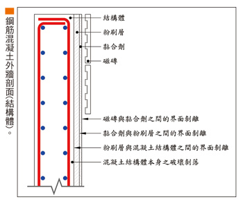 房子是人們休息居住的場所,是人們保護自身安全的地方,但這個保家衛民的家園,卻充斥著許多因施工不良所導致的相關問題,這些與生活息息相關的建築議題平時小則造成建築滲水、漏水、壁癌,造成生活上的不便及困擾,大則地震來時造成人員財產的傷亡損失,我們還能繼續予以輕忽嗎?混凝土裂縫、漏水問題「壁癌」(也叫「白華」)看起來就像發霉,都是從房屋混凝土的細小裂縫所引發生成的,簡單來說,水泥若含游離氧化鈣,本來就有長白華的最基本要件,在適當的環境條件中就會形成。再加上台灣處於海島型氣候,相較於房屋比較潮濕,遇到陰雨綿綿的日子,濕氣就由混凝土的微細裂縫進入水泥材料中,水分會與鈣質結合形成氫氧化鈣Ca(OH)2,如果有足夠的空間結晶,尤其是牆面,就會慢慢含水結晶長成壁癌。壁癌除了會損害建築物及視覺觀感不佳外,更容易滋生綠色或黑色的黴菌,飄散各處,若吸進肺裡,對人體健康有不良的影響。日積月累下,對居家環境及身心健康產生無形的侵害,損失極大,所以買房子千萬不要買到容易產生混凝土裂縫的漏水房!大理石、磁磚掉落問題大理石、磁磚掉落砸傷人時有耳聞,尤其在季節轉換、氣溫劇烈變化之際,大理石、磁磚更容易因熱脹冷縮而剝落。近年不少個案訴求全棟石材外牆打造建築,或使用大量隔柵加以美化裝飾的建築,這類建築設計使建築物整體重量增加之外,在地震來臨時,受地震力搖晃的程度也會比一般大樓還要來得大,外觀裝飾物掉落的風險性也相對提高。這些美輪美奐的建築外觀的確賞心悅目,但若沒有把石材或隔柵鎖固的施工品質做好,走在這些建築的下方也令大家不禁感到危機四伏。
