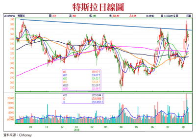 近期全球電動車產業,可說是好戲連台。不僅中國官方出台最新版本電動車產業扶植政策,意圖間接拉升中國電動車廠市場競爭力,擴大於全球電動車市場市占率。另一方面,Tesla最後如果真的成功私有化,公司後續營運亦如執行長馬斯克預期漸入佳境時,預料也將可順利進一步為台股與中國電動車廠、Tesla相關,零組件供應鏈族群股,挹注更強力來自客戶拉貨數量持續增加,以及產業基本面利多所引動業績成長動能。私有化創造更佳營運環境 有利特斯拉長期經營決策全球電動車知名大廠特斯拉(Tesla)近期傳出,公司董事會及經營高層正考慮向主管機關申請停止股票公開交易,規劃將以每股四二○美元(與特斯拉八月六日收盤價三四二美元相比,溢價二二.八○%)收購市場股票後下市,讓特斯拉成為一家私人公司。私有化消息曝光後,特斯拉股價於八月七日一度暴漲達一○.九九%,以每股三七九.五七美元收盤,接近去(二○一七)年九月十八日收盤歷史高價─三八五美元(八月七日盤中最高價三八七.四六美元,亦逼近去年九月十八日盤中高點─三八九.六一美元)。特斯拉執行長馬斯克於推特上表示,現階段已確定獲得投資者金援,(唯一剩下不確定因素,只剩股東會針對私有化議案,投票能否通過的最後結果。)馬斯克於一封給公司員工的公開信中,證實公司私有化可能性。他表示:「做為一家上市公司,我們容易受到股票劇烈波動影響,這可能會讓特斯拉的員工大為分心,所有人都是股東。」馬斯克指出,公司私有化是特斯拉的最佳道路,將可創造最好的營運環境,他將繼續擔任執行長。馬斯克也說到,作為一家上市公司,由於每一季都必須公開財報內容,因而容易被短期須迎合投資市場利多需求的炒短線思維影響,不利公司長期經營決策一致性。換句話說,馬斯克認為,特斯拉如果能夠順利私有化下市,將有利企業長期經營決策,等同間接暗示,私有化有利特斯拉長期經營績效表現。美國知名媒體《CNBC》亦引述風投公司Loup Ventures分析師觀點認為,特斯拉私有化後,將不再需要每季為股東負責、為每週產量負責,可更加專注於如擴廠等,有利企業長期發展目標。