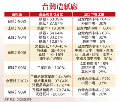同時,台股造紙族群股,由於受惠國際原料紙漿價格持續漲升,且傳統營運旺季將屆,可望進一步帶動造紙廠產品報價反應漲升,台灣文具用紙、家用紙品相關造紙廠,後市營收成長動能有望獲得延續。受惠傳統營運旺季到來,且國際紙漿價格目前仍居高檔水準,台股造紙族群股七月營收表現亮眼。榮成營收四七.三七億元,小幅月減三.七一%,唯年增幅度仍達三五.○九%;工紙代理銷售廠寶隆,也因受惠代理銷售榮成外銷工紙效益,營收達一.六七億元,月增率一五.七八%,年減○.八一%。華紙(1905)亦於今年陸續調漲旗下各產品報價後,營收成長達二一.七四億元,月增率三.八%,年增率達三三.二九%。永豐餘營收六五.一二億元,年增率達二七.三四%。台紙營收二.七一億元,年增率亦達一○%以上。紙漿紙品廠華紙,第一季儘管因受花蓮地震影響,紙漿廠運作遭逢逆勢挑戰,但第二季營收快速回溫,並且於ASP持續調漲、自用漿比重開始回溫的有利情況下,毛利率逐步恢復以往正常水準,自第一季七.七六%,明顯上升達九.八二%,優於法人機構原先預期;永豐餘因受華紙營收營收業績有效助攻下,儘管中國揚州工紙廠目前仍處於無法進口美國廢紙的僵持情勢下,但單季毛利率仍可從上一季一三.七九%,提升達一六.三一%。台灣最大紙漿廠-華紙 第二季營收創歷史新高對於後續國際紙漿價格走勢,華紙觀察指出,第三季向來即為傳統營運淡季,但歐、美漿價仍續維高檔,主要因受惠市場需求暢旺,此為以往未曾觀察到的現象;後續兩個月如難見到國際紙漿明顯降價,配合第四季傳統旺季來臨,預料歐美紙漿報價將再度走揚。