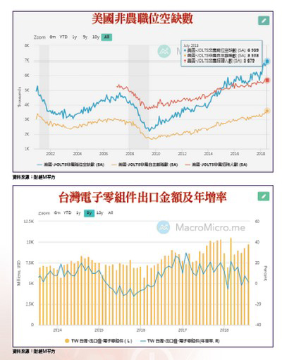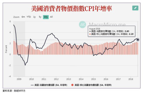 台股在中美貿易衝突持續加深的變數之下,市場觀望的氣氛日前曾讓交易量縮至九一○億元,該來的終究躲不掉,九月十七日美國正式宣布對中國二千億美元進口商品加徵一○%關稅,九月二四日開始生效,並且自明(二○一九)年一月起將關稅調升至二五%。美國CPI年增率放緩 有利美股後勢目前中美雙方氣氛不睦,短時間很難再以談判協商方式解決,中方先前於十一日以美國未履行WTO對其反傾銷稅爭端的裁決,向WTO申請授權對美國實施每年七十億美元的制裁;而本次美方對二千億商品課稅聲明中指出,若中國對美農民或其他行業採取報復動行動,將立即進行第三階段,對中國二六七○億美元進口品徵收額外關稅。顯然,貿易衝突長期化已難以避免,不過對照陸股九月十八日的大漲走勢,短線上市場似乎以利空出盡來反應。既然備受壓抑的陸股如此表態,台股後勢保持警覺之餘,也不必過度悲觀,回歸基本面考量仍是最大原則。目前影響台股的兩大力量,一個是外部力量(以美股為指標),一個是內部條件(台灣自身基本面)。就美國而言,目前各項經濟指標數據可以說是碾壓全球主要國家,美國八月ISM製造業指數六一.三創下二○一四年新高,消費者信心一三三.四為二千年十月以來新高,同時就業市場強勁,八月非農就業新增人數月增二十.一萬人,八月薪資年增率高達二.九二%,創二○○九年以來最快增速,足以支持後續的消費擴張。在這樣的數據下,美股維持多方格局是大概率事件,有利於台股市場信心。近期外部環境剩下唯一要留意的就屬九月二十七日FED的會後聲明,投資人需觀察未來一年的預估升息次數,如果次數減少,代表升息腳步放緩,可視為股市利多。觀察美國八月消費物價指數CPI月增○.二%,扣除食品和能源的核心CPI則上漲○.一%,增幅較七月的○.二%縮小。至於年增率,由於能源、醫保服務與服飾的價格年增幅均較七月縮減,八月CPI年率由二.九%降至二.七%,核心CPI年增率則由七月的二.四%降至二.二%,通膨壓力八月份明顯放緩,降低未來升息次數是可以期待的,強勢美元的預期心理可望降低,近而緩和全球新興市場資金外流的壓力。