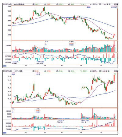 跌深反彈股 測支撐低接 短線衝高後賣而隨著矽晶圓個股股價陸續站回月線之上後,其他漲價缺貨股就會有跟上的機會,直至九月二十五日國巨(2327)收五○六元,收於五日線上、十日線下,距月線五七二元還有些距離,但也一樣有跌勢趨緩反攻的機會,二線的奇力新(2456)都攻回月線之上了。隨著漲價缺貨股逐漸穩定,但也要注意上方仍舊有重重的套牢壓力,意思就是反攻過程會較為辛苦,要一路向上走的困難度高,因此操作上要以高出低進來因應,不能看漲就追,而是抓出跌深反彈股的脈動,測支撐低接,短線衝高後賣,反覆執行,才能有效降低成本,噴出的股票如果沒在轎上,就別追了,因為盤勢好轉,跌深的個股,會呈現輪彈輪漲的節奏,鮮少會有股票是一路一直漲的。多方趨勢股 挺過亂流可納入投資參考挺過亂流的多方趨勢股,也是可納入投資選擇的方向之一,如即將進入旺季的紡織族群,不受貿易戰影響,又有轉單的機會,除了儒鴻(1476)、聚陽(1477)之外,也可注意淡季不淡的力鵬(1447),今年上半年EPS為○.四二元,七月營收為月增三.○八%,八月營收月增二.八九%,有淡季不淡的表現。其中除了CPL價格維持高檔有助尼龍的報價之外,來自於母公司力麗新開產能的貢獻也是正面助益,所以會看到外資自八月份以來,近兩個月的時間,買超力鵬一萬多張。