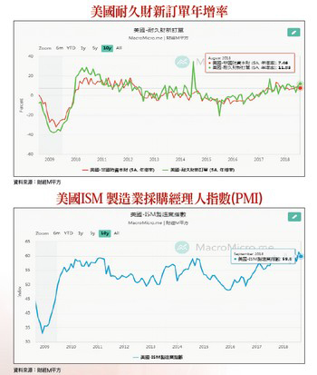 近期全球主要股市以日、美表現最為突出,日本股市主要受惠於日圓趨勢走貶,日經二二五指數創二七年新高,第三季累計漲幅達八.一%;美股則受惠於包括消費及薪資等多項強勁的經濟數據而上漲,S&P五○○指數第三季累計漲幅為七.二%,創下二○一三年第四季度以來的最佳季度表現。台股表現雖然不如日、美股市,不過仍有相當程度的韌性,第三季加權指數三度跌破年線,又三度站回均線糾結區,其中,台積電第三季漲幅二一.二%功不可沒,櫃買指數就沒那麼幸運了,第三季下跌了一三%,顯然,外資與內資的市場信心差距頗大。目前時序上處於第四季最重要的十月份,尤其是今年。眾所周知,影響股市重中之重就是企業獲利的增長力道,根據各方法人的報告顯示,S&P五○○企業第三季整體獲利預估比去年同期成長約兩成,與第二季的增速不遑多讓,財報利多值得期待,但是從第四季起,由於基期墊高的原因,年增率將逐季明顯下降,企業獲利增速下降,在股市相對高檔的位置,確實容易影響市場信心。所以,純粹由企業財報基本面的角度觀察而言,十月中旬開始的美股超級財報周,是今年美股再創新高的絕佳機會,再往後甚至到明年,全球的市場變數就增多了。經濟數據正向發展 力挺美股多方格局觀察近期公布的經濟數據,也持續正向發展,是美股維持多方格局的依靠。日前公布的美國八月份耐久財新訂單月增四.五%,明顯優於前期負的一.七%,也高於市場預估值二.○%,相較去年同期也增長了一一.八三%,若剔除國防資本財,年增率仍達七.四六%,持續穩健增長。