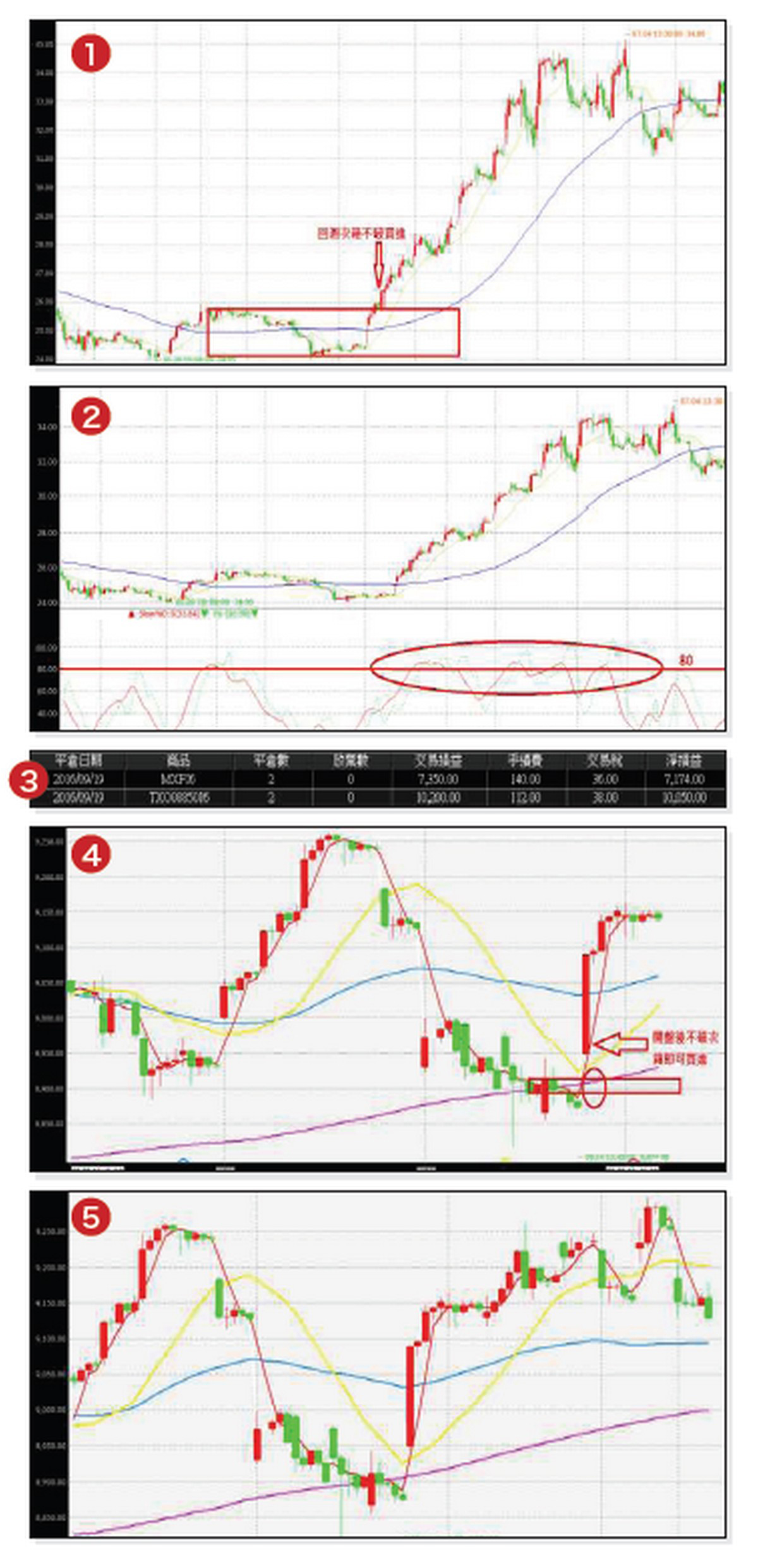 學習箱波均的過程和心得學習技術分析都是從均線學起,因此學習箱波均也是從理論開始。股市波動從波開始運行,最不可思議的就是我們常忽略,這波動就是一連串的N字波動。就轉折點連接起來,就是一連串的N字了。而N字形成後,又可分每折的線,點點相連就是a到b到c,形成N字。一個波段都要走完N字才能完成。單單是這個觀念,就已經讓我大呼驚奇,發覺自己以前跟白紙一樣,好像都懂,其實一竅不通。反省自己過往,感覺以往買股,根本在賭博。接著開始帶進箱波均的觀念,從波浪理論中,我們知道上漲至少三波,之後會有第四波和第五波。但第四波和第五波常常是變異的,若是操作能在第三波內獲利,就能達到穩定獲利的目的。因此,如何發現第一波到第二波,進而進入操作,完整的拿到第三波的利潤後,結束操作,甚至持續等待直到第四波變異以後才結束操作,就可以穩定獲利。這就是基本的想法。所以發現轉折變得至為重要。下面做個舉例,當時雖然還沒讀熟,已是一時技癢,利用箱波均的觀念,採用小時線的圖,買進僑威二十張,時間序是六月八日到六月二十三日,從圖一也可以看出,次箱頂遭到二次測試,箱頂沒破,符合招式,過頂不破頂,快速逆向走,若是以一般市場分析師而言,這算是上沖下洗的盤了,甚至中途破線,賣出訊號是十分強烈的。等到買進訊號出現,早已經是漲一波了。由於轉折很重要,所以箱波均採用箱子的觀念,去解決轉折是否成功,主力是否改變方向。以往大多數技術分析的書都屬落後指標,如移動平均線,彎頭時要收盤才看得懂,也不確定是否成立。MACD和乖離,轉折處來到中線也需要一些時日,行情契機早已呈現,此時切入都屬追高殺低了。以僑威為例,老師解釋KD指標也是非常精準的。圖二:KD也是可以論次箱的,令人驚訝! 若是回頭來說期貨當沖課程,除了箱波均理論基礎外,老師更是指導了交易技巧和手法,可以說是完全實戰教學,以九月十九日這天小台和選擇權的績效來說(圖三),以小時線來檢討,雖然前一日破底,但九月十九日開盤收復次箱底,五分線出現缺口,雙條件發生因此進多單。印證箱波均理論在實戰中的應用(圖四)。接著箱波均還能解決大漲(或大跌)後的操作,以九月十九日後市發展來說(圖五),九月二十五日都屢創新高,都沒有出現缺口。此時都應續抱,這也是我當時的盲點,我在九月十九日就平倉了,並沒有續抱。而以箱波均理論來說,此時都沒有出現缺口,實在沒有賣的理由。在九月二十六日那天,小時線被阻斷,因此斷定,缺口準備出現。下一個營業日九月二十九日,盤勢翻轉出現轉浪,形勢似乎一片大好,只是創高之後翻轉直下,若是以老師的指導,移動停利二十點來說,最高點九二八四停利二十點,也可以在九二六○附近平倉,若是以進場都沒平倉來計算,將可每口贏得二六○點的利潤。這也是我未來要加強的部分。圖一至圖五