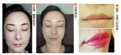 但現在的技術發達,消費意識抬頭,政府合法立案的公司單位對於產品的質量安全更加重視,目前推廣中的新式技術做完之後馬上就可以外出,不腫不痛,沒有明顯修復期,遠處看來,就像是真的眼睫、眉毛,若是嘴唇,更能呈現自然透亮的口紅妝感,帶給消費者更多的安全、安心和便利。國際美容展上,一位二十多歲的女士躺在美容床上,原本淡白、乾癟的唇色,在紋繡師的巧手下,短短一小時,立刻展現出自然的水嫩紅潤感,自然的就好像天生氣色特別好一樣。像這樣的例子不勝枚舉。陳彥如舉例,過去紋眉,一大片粗粗黑黑、容易變紅變藍的眉毛,現在逐漸被一根根仿生如真實眉毛般的毛流線條所取代,線上許多知名的藝人和網紅也紛紛加入紋繡取代化妝的行列,如果再搭配細緻流暢的時尚美瞳線,眼睛會變得更大更有神,或者做成淡淡的粉霧眉效果,也能增加臉部輪廓的深邃感。需求大產值高 新經濟勢力崛起不只是女生,現在連許多男生都愛做紋繡,陳彥如說,男生不愛化妝,但是更重視面相和精神,俗話說,「眉斷財斷」、「眉開生運」,也就是說眉好,運自然就會好。許多男士都是事業有成,有經濟能力之後,更重視自己的門面,想看起來更有精神,於是開始在意起眉、眼、唇天生的缺陷對人際關係和事業上的影響。尤其是髮際線,「有些沒有毛囊,或不再長頭髮的地方,我們就能夠利用紋繡技術把頭皮稀疏的空洞補起來,製造出跟有毛髮一樣的效果,既濃密又自然」,除非「你真的很近很近的看,不然看不出來」。