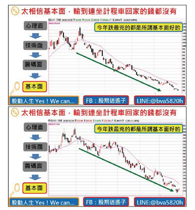 我們在上期周刊提到,加權指數會在十月十一日的長黑K做區間盤整,雖然是盤整,但卻是走一個區間偏弱的格局,在這個區間,個股做多做空都有機會,只是因為這個區間波動相當大,資金水位要控制好!同時我們也跟大家報告,指數必須封閉缺口一○三○○點,多方才會重新取得發球權,如果未回補再回測破低的話,就是另一段跌幅的開始,會往下尋找另一個區間來做整理。指數在10/25正式跌破10/11長黑區間指數在十月二十五日已正式跌破區間,這個跳空缺口對大盤非常傷,以技術面來說,跌破區間代表另一段跌幅的開始,短線上大盤雖然在十月二十九日、十月三十日嘗試做反彈,但量一天比一天縮,以各均線下彎的程度來看,量縮指數要攻堅並不容易,同時兩根十字線都不能過十月二十六日的高點,以型態來說,會持續用盤整來修正與均線的乖離,用時間來換取空間,指數如果能回補十月二十五日跳空缺口,站穩九七○○點後才算比較止穩,回到十月十一日長黑區間,繼續盤整修正與均線的乖離,再次回到這個區間,個股多空都有機會。但萬一再跌破九四○○點,不排除往下一個滿足點九千點邁進。既然盤面上還是空方佔了上風,投資朋友在操作上還是要偏空思考,很多人會問說,跌到這邊還會再跌嗎?我們一直跟大家說投資不要預設任何立場,在方向還沒改變前,在多方趨勢還沒形成前,你就是耐心的等待行情結束,不然這波一千四百點下跌行情是掌握不到的,投資我們要試著尊重市場,當趨勢形成時,努力跟上!基本面vs.技術面基本面跟技術面哪個重要?在這波下跌行情中,不言可喻!在多頭時,基本面的確很好用,甚至是當股價有風險時,你不停損都還有機會解套。但空頭呢?今年這波下跌,跌最兇、跌最慘的都是所謂基本面好的個股,我們可以看到被動元件、矽晶圓這類股票在下跌過程中,新聞天天報利多,但股價卻天天像在除息一樣,跌到今天股價都已經打了三折,但百貨公司的週年慶,頂多也才七折,了不起打對折!投資每個漲跌都是機會,只要善設停損,做多跟做空的風險是一樣的。也許你不喜歡空頭,但你得習慣多空操作,才能在市場長長久久。雖然你討厭空頭,但空頭市場卻提供了另一個機會─套利,即使你是一般投資人,也可以像外資一樣套利,我們在十月三十日建立了大量的套利部位,當同一個商品,有兩個不同價格時,就會產生套利的空間。接下來的行情,如果你不知道怎麼掌握,或是想參與套利機會,歡迎大家加入我們的群組!