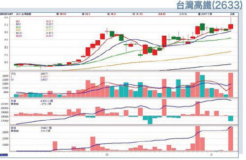 某股十月底受惠日商日立製作所將以每股六十元價格收購永大的消息釋出,某股股價連續兩日大幅噴發,帶動股價突破前高。作為永大長達五十多年合作夥伴的日立製作所,在十月二十六日的財報說明會中表示,目前日立在中國電梯市場僅排名第三至第四位,期望能結合永大在二○二一年搶下市場龍頭地位。註記:某股為永大(1507)台達電(2308):布局車用電子的版圖逐漸成形,法人預估明年車用電子將為台達電貢獻五%至六%的成長動能。同時,併購泰達電後,將有一定的程度能避開中美貿易戰的影響,法人預期明年台達電每股盈餘將增加一一%。台灣高鐵(2633):高鐵假期上半年銷售額成長二○%,繳出了亮麗的雙位數成長佳績,替高鐵業績帶來成長動能。高鐵表示,去年高鐵假期的人次便達到二百二十萬人,超過二百萬人次的目標,比起前年大幅成長將近七成。今年將可達到二百五十萬人次的目標。元大金(2885):受惠財富管理業務增長,元大金前八個月稅後獲利來到一五六.一一億元,EPS達一.三三元。法人預期,目前持續提升財富管理市場,將有助於元大金獲利再提升。元大金累計一至九月合併營收為七五四.一九億元,較去年同期成長一五.七六%。