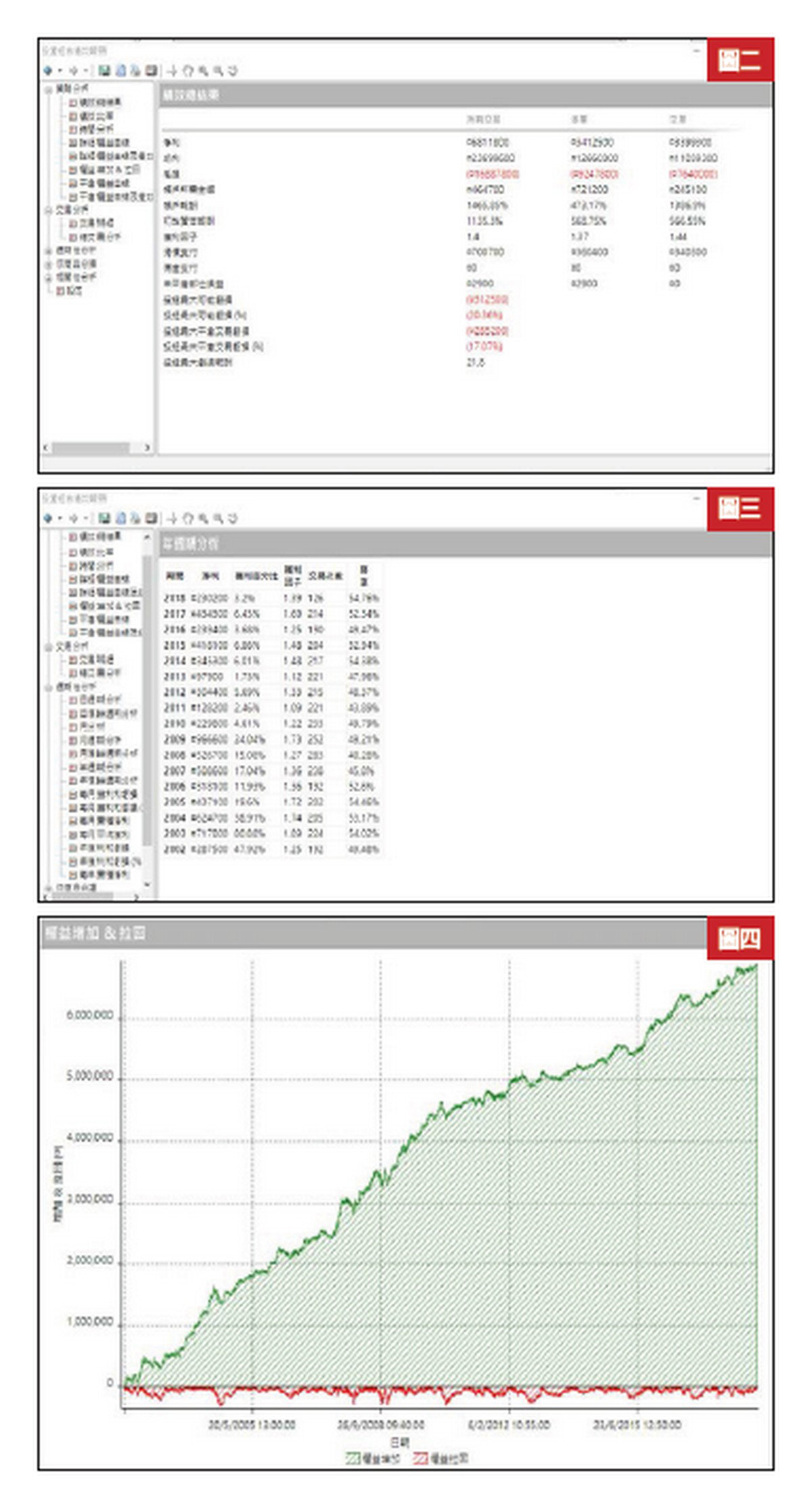 記得去年十二月看到某週刊的標題為二○一七年最強台股基金經理人大調查,三成認為明年(二○一八)台股高點落在第一季,現在(二○一八年十一月)看起來若沒有意外的話,當時的研判是十分準確的,所以若對照今年高點一一二七○在第一季,那麼第二季應不宜有過多樂觀推論才是,再加上六月的中美貿易戰紛爭理當保守以對,才不會在第三、四季套牢股票,所以在操作策略上第二、三季應作出不小的修正,但是因為基金規模不小,部分調整需基於法規及時間才能作出最佳策略。不過基金的策略及績效並不是本期要討論的重點,本期要說的是不同於基金的一般專業投資人或散戶在執行操作的過程中發現判斷及策略有錯的時候,能否果斷做出調整才是勝負的關鍵。相對於基金持股部位而言,一般投資人的持股部位是很容易調整的,但為什麼矽晶圓、蘋概股、被動元件的股票被套牢這麼深呢?原因很簡單,就是犯了貪心及恐懼的毛病:1.去年股票賺錢很容易,2.今年第一季套牢的股票到了第二季還能解套以為不會賠,沒有了風險意識,完全喪失果斷調整執行的能力,甚至從贏家變輸家呢!該怎樣徹底解決這種專業不足,執行不力的宿命呢?方法很簡單,就是利用AI程式交易來改變執行交易的弱點,當然AI程式研判多空也常有錯誤的時候, 但AI程式會毫不猶豫的小賠出場,但當AI程式正確的時候,會勇敢的抱到大賺為止。其實多數投資人常以小賺大賠收場,怎樣改變成大賺小賠,不能只是跟著喊喊口號,要能確實做到賺錢才行,附圖是加權指數從二○○一年的四九三五點到二○一八年十一月五日的九八九○點(圖一),十八年漲了一倍,若以六十萬的資金投資在二○○一年一月二日買進一口大台期貨在四九三五點(留倉且每月換倉)到二○一八年十一月五日收在九八一七點,共賺了四八八二點,獲利九十七萬六千四百元,換算投報率一六二%。若以同樣資本改以AI程式交易從二○○一年到二○一八年則獲利約六百八十萬(圖二、圖三),換算投報率超過一○○○%(十倍)(圖四),而這麼高的報酬率是建立在AI程式,當錯誤時迅速執行停損及交易正確時能放大獲利。誰說在市場賺錢不易?其實可以很輕鬆容易的,你可以選擇圖一的賺錢方式,更可以選擇圖四的賺法,只要你想,只要你相信嘗試,你一樣可以輕鬆當個贏家的。