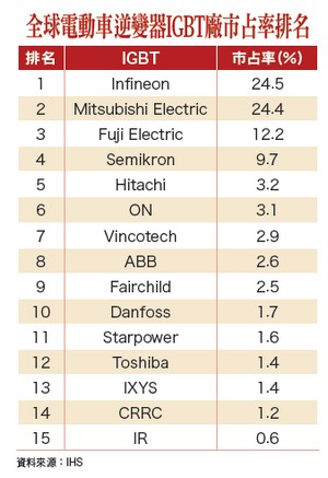 由於電動車/新能源車(油電混合車),快速充電、無線充電等電力補充應用正快速興起,半導體IC晶圓製造廠六吋、八吋廠,製程所需機器設備早已停產,產能擴充十分有限、難度相當高,使得包含Power MOSFET、IGBT在內的半導體器件,近期以來所能新增供應量相當有限,因此,預料未來幾年內,全球Power MOSFET、IGBT市場榮景可期。新能源車、電動車所使用半導體,大致可分為感測器、控制器、功率器件三大板塊。其中,功率器件由傳統內燃機引擎汽車,擴延應用至新能源車領域的產值增長動能強勁,成長比率預估高達十五倍左右。預估未來將加速竄起的新能源車、電動車,內建各式半導體元件、功率元件及模組的建造成本,將大幅倍增達六百至七百美元左右。強化IC、MOSFET、IGBT性能利器 全球晶圓薄化製程應用熱潮興起新能源車迥異於傳統內燃機引擎汽車的關鍵核心技術為電池、電子控制、電機驅動。電機驅動又區分成三大部分:逆變器(將直流電變為交流電的設備,逆變器中使用IGBT,約佔整個電機驅動成本的一半)、電機、傳動機構。另外,充電樁也需使用Power MOSFET、IGBT,以達成穩定、順利、安全的充電功能。功率器件市場相關訊息,雖然較少登上媒體注目焦點,但台廠於全球市占率達一○%,於未來應用可望蓬勃發展的全球市場料仍有機會搶下一席之地。對於半導體IC晶圓製造廠而言,半導體IC晶圓、MOSFET晶圓、IGBT晶圓施以「晶圓薄化」製程,有助前述幾項半導體相關應用元件下游終端出海口,以更大部份、更高比例朝向「高階車用」電子領域推進,預料也將間接有助於IGBT晶片製造代工、提供「晶圓薄化」製程代工服務的相關電子業台廠:富鼎(8261)、大中(6435)、茂矽(2342)、世界(5347)、聯電(2303)、台積電(2303)、健策(3653)、環球晶(6488)、台勝科(3532)、合晶(6182)、嘉晶(3016)、昇陽半(8028)、頎邦(6147),增強未來「高階車用」化所獲營收業績成長動能,進一步有機會交出營運獲利大幅拉升佳績,正式升級、進階成為「高階應用」、「車用電子」化營運板塊。全球晶圓薄化代工潮崛起 台積電供應鏈昇陽半成長快台灣半導體晶圓薄化代工廠,不僅以全球晶圓代工龍頭大廠台積電(2330)為最大客戶,全球車用半導體前三大廠英飛凌(Infineon)亦為其重要客戶,且全球最大半導體設備、材料龍頭廠應用材料(Applied Materials)更是其最大法人股東。