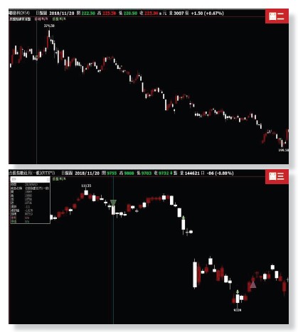 今年七月十三日外資麥格理對大立光(3008)的評等為遜於大盤,目標價為二二○○元,至十月十一日仍維持相同評等。此評等是所有內外資對大立光評等唯一低於三千元的機構,且半年來沒有調整的。至於其他機構對於大立光的評等皆為優於大盤或買進或持有,若以七月十三日到十一月十九日大立光的股價表現從五三三○元跌到三二三五元來看,麥格理是唯一評等準確的。再來看各機構對國巨(2327)的評等,從七月到九月的評等皆為買進持有,目標價為一千六百元至八三八元不等,現在看起來似乎全部都錯了。說這件事並不是特別要推崇麥格理的分析報告或貶低其他專業機構,而是說超過二十家以上的專業機構評等錯誤,真的不以為然,真的是有失名牌。所以我認為投資人在研讀機構的分析報告投資建議時需審慎評估,尤其若是依照機構建議做出投資時,仍需要追蹤其後續分析報告是否調整,以免沒有跟上腳步不小心套牢股票。主觀交易的方法很多,基本面分析、技術面分析都是好方法,但不管何種方法都會有盲點或錯誤的時候,端看能否及時作出止損或調整來保全資本,這時候AI程式交易就特別容易做到,這也是AI程式越來越多人採用的原因。圖一大立光在二○一八年八月二日AI程式出現五○○五元賣出訊號,一直到十一月十九日收盤價三二三五元,超過三個月仍沒有買進訊號。圖二聯發科(2454)一個月內在二○一八年四月十日及四月二十五日皆出現三四一.五元賣出訊號,一直到過了半年十月十七日才出現二二四.五元買進訊號,而十月二十五日又出現二一○元止損賣出訊號。看來操作準確度是不是很高呢?方法是不是很簡單呢?但其實看起來越簡單的事對一般投資人似乎是越難做到,怎麼說呢?投資人有兩個最大的弱點:1.根據自己的經驗法則,操作哪有那麼容易就賺到錢呢!但說實在的如果自己的經驗法則行得通的話,也就不用再尋求幫助了吧。2.知道要有紀律的執行操作,但就是會非常害怕虧損,而害怕是源自於沒有自信賺回來。所以找到成功的方法建立自信,才是賺錢的根本!而成功的方法之一就是把同樣AI程式套用期貨操作,如圖三,二○一八年九月十日出現一○七三四(放空)賣出訊號,直到十一月一日才出現九七八八買進訊號,這期間交易差價九四六點,等於一口期貨賺進一八九二○○元,方法是不是很簡單呢?本期說明股票及期貨AI程式交易波段操作實例,希望能給大家一些幫助及信心,再則有機緣看到本文者千萬不要就此略過,花點時間來了解,或許你的投資會真的變得不一樣,投資獲利的聖杯是除了精準的分析決策之外,更要能徹底執行停損及停利,而不被貪婪心恐懼所影響,想要變成投資贏家,AI程式交易絕對是你的首選!