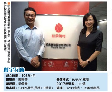 問:有什麼樣的新思維放在松果購物?答:目前有八成的營收是由手機端來的。傳統電腦螢幕跟手機介面就是很大的不同,思維也會不一樣,例如手機上的廣告與電腦螢幕的就不同,放的位置、內容、大小就完全不一樣。在手機上可以用最新的趨勢來做新的宣傳,例如,六年前創業家兄弟在選擇用瀏覽器介面來開發宣傳還是用手機App,就有很多的討論,後來選擇手機App,從結果看是賭對的。但是今天來看,用手機裝置來開發應用完全沒有問題,不會有人認為不對。問:松果購物是否會超越創業家兄弟?包括IPO?答:松果目前團隊約五十人,業績約在一億元,相較於當年創業家做到一億元時,那時團隊人數約八十人,相較起來是有更進步。在IPO的進程方面,四位創辦人有更清楚的任務劃分,IPO的速度能不能超越很難說,得看市場的反應,計畫是在第二季公開發行,第三季登入興櫃,二○二○年六月底前上市。
