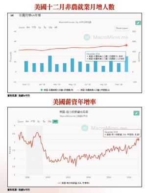 美股於上周五(元月四日)再度拉出長紅,道瓊指數大漲七四六點(三.二%),NASDAQ期貨更是大漲四.四%作收。按照大部分媒體的解讀是因美國十二月非農就業人口增速出現三一.二萬人的驚艷數據,大幅優於市場預期的十八.四萬人,再加上聯會主席鮑威爾出席亞特蘭大經濟論壇時的鴿派言論,促使美股大漲,這般解讀雖不能說錯,但也不完全對。超好的就業數據 不見得有利於股市相對精準的說法應該是:美股大漲的主因為FED主席表示,聯準會沒有預先設定利率政策,未來將保持耐心,觀察經濟發展,依經濟情勢的變化隨時準備調整政策立場,若FED縮表在金融市場引發問題,會調整縮表步伐,在必要時作出改變以支持經濟。非農就業人口增速優於預期,只是當下樂觀氛圍的再襯托罷了,實際上對金融市場是好壞參半。因為若就業數據小幅優於預期是很好,但若好的過頭也不是一件好事,反而有可能成為支持FED未來再升息的原因。觀察美國十二月的新增就業概況,不但創下去年二月來最高紀錄,且為連續第九九個月新增就業,為史上最長的紀錄,總計二○一八年共新增二六五萬人,高於二○一六、二○一七年,連續八年新增就業人數超過二○○萬人。更重要的是,十二月平均時薪年增三.二%,為二○○九年以來最大年升幅,連續三個月薪資年增率超過三%紀錄,也是二○○九年全球金融危機結束後首見。