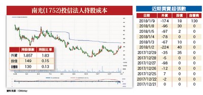 南光的美國抗生素於二○一七年取得藥證,其原廠銷售約兩億美金,客戶在美國市佔率快速提升中,二○一九年訂單將有機會倍增。客戶先前先負擔九十萬美金研發費用,使初期銷售分潤需先扣除此費用,目前已扣除的差不多,今年開始南光將開始正式有分潤入賬,預估約三千萬台幣左右。另外遞延已久的骨鬆藥物二○一九年有機會取得藥證,已送件的兩項癌症產品則仍須等待專利到期及訴訟結果,二○一八年七月新送件一項罕見用藥學名藥症,預計二○二○年有機會取證,市場約兩億美金。整體而言,南光今年美國銷售將大幅成長,同時藥證也正逐步累積增加中。另外,中國銷售藥物走單獨定價路線,價格穩定,不受帶量採購政策影響,預期未來仍將持續成長。法人預估二○一九年營運將穩健成長,美國有機會出現較大的貢獻,預估EPS一.七二元,年增率約四四%,營運明顯好轉。