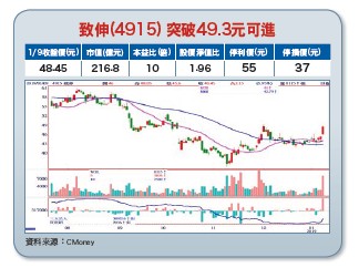 某股是電腦及手機周邊製造廠,產品比重為:電腦周邊(滑鼠、鍵盤、觸控板等)佔三四%、行動裝置零組件(相機模組CCM、藍牙耳機、無線充電產品等)佔二六%、事務機器佔一○%、音響業務(如Tymphany高階音響、智慧音箱揚聲器及組裝代工)佔三○%。某股為致伸(4915)公司主要營運動能來自電聲產品及相機鏡頭模組,其中電聲產品具技術領先優勢,尤其在智慧喇叭方面,部分產品的毛利率可高達三○%至四○%,潛在客戶包括臉書Facebook、蘋果Apple(HomePod)和Harman Kardon(與微軟合作之Invoke)等。致伸於二○一七年十一月,取得汽車電子系統供應商Belfast Holdings (Cayman)三七%股權,成為最大單一股東,Belfast研發的EPS、AFS等系統獲得許多國際大廠和中國客戶認證。以往致伸產品以喇叭為主,去(二○一八)年新增無線耳機新訂單,成為今(二○一九)年成長動能來源,致伸另一成長動能在手機鏡頭模組,主要客戶為華為、OPPO及魅族等中國大陸一線品牌,隨著雙鏡頭滲透率提升,可望帶動致伸獲利的提升。展望二○一九年,電聲產品仍是營收成長最大動力,加上耳機營收佔比提高,以及車用鏡頭營運也開始加溫,今年成長潛力值得期待。【操作建議】致伸股價反彈至五十元附近後拉回整理,股價走勢沿著季線狹幅波動,若能帶量突破四九.三元,則波段反彈行情可期。