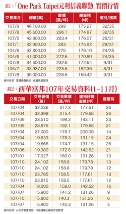 台北市豪宅有所謂的每坪三百萬元的「彭淮南防線」,但是在元利信義聯勤於去(二○一八)年底創下每坪二九九萬元新紀錄,並超過「仁愛帝寶」曾創下的二九八萬元後,距離三百萬元的天花板,已是一步之遙,在今年或明年,絕對可以突破天際線。每坪二九九萬元新豪宅王根據去年十二月最新實價登錄,「One Park Taipei元利信義聯勤」揭露三十二樓兩戶交易,成交總價分別是四.六一億元及四.五一億元,總面積在一七四至一七六坪之間,拆算單價後各是二九九萬元及二九六.一萬元,迄今,元利信義聯勤已有十一戶的交易揭露。信義房屋不動產企研室專案經理曾敬德表示,該頂級豪宅經歷十二年的時間終於落成,而揭露的實價價格也創下近年新高,豪宅市場已從谷底復甦回溫,新的頂級豪宅仍吸引置產或換屋豪宅客的目光,預料未來幾年該案的成交價格仍會是市場的話題。曾敬德指出,由元利信義聯勤所揭露的價格,高樓層的每坪房價都有二七二萬元以上,至於低樓層的揭露訊息,則約在二三○萬元上下,他認為,最頂層的三十一樓或三十五樓的成交價,絕對可以突破三百萬元(表一)。去年成交熱絡的豪宅還有大直地區的「西華富邦」豪宅案,二十一樓總價二億八八七五萬元,拆算車位後,每坪單價一九二.一萬元,二十三樓總價二億八五一○萬元,每坪一九九.二萬元,而去年總共賣出十二戶,總銷金額達到二七.五三億元(表二)。