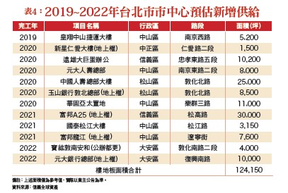 但未來三年內新增供給除了量體稀少之外,預計可對外供應市場需求的物件更為有限,供給緊縮的狀態持續中,因此,預計未來兩年市場需求仍會有穩定的表現。世邦魏理仕台灣交易與顧問部主管陳頌民表示,今年面臨無新大樓落成,辦公空間供給釋出空間相當有限。以台北市為例,租賃市場面臨可出租的選擇有限,市場轉為房東市場且房東具備議價優勢,平均租金預料成長將持平,全年成長幅度將不高於二%。黃瑞楠指出,即便部分經濟學家和投資顧問對經濟發展感到疑慮,他仍看好今年度台灣商用不動產市場表現,因為企業返台布局產能和對自用辦公室需求這兩大引擎,將扮演支撐市場的重要角色。劉學龍認為,廠辦、廠房與工業用地等資產將持續受惠於自用與投資需求,租賃市場表現良好帶動下,開價合理的台北市辦公室與廠辦資產仍然受到買家青睞。世邦魏理仕台灣董事總經理朱幸兒表示,去年有許多重量級台商回流置產,本地自用型買方與建商亦積極搶進不動產市場使買盤獲支撐,推升了去年總交易量至往年榮景水平。政府推三年迎台商回台計畫今年雖有美中貿易戰日趨升溫的隱憂,但行政院於今年元旦起實施為期三年的「歡迎台商回台投資行動方案」,期望促成大陸台商回台投資,加速台商落地發展,預期中短期內工業用地及工業地產的需求將因台商回流投資而穩健增加。展望今年,雖有新上任縣市長預料祭出政策利多以吸引投資,但受到國際政經情勢及中美貿易大戰使得全球市場仍處於極大變數,因此預估台灣不動產市場自用型需求熱度應持續看漲,然投資型需求則將處於相對有限之態勢。此外,由於商業及工業不動產租金持續上漲之故,估計長期租金收益率亦將小幅攀升(表三) 。信義全球資產經理王維宏表示,台北市市中心未來四年釋出辦公樓地板面積約十二萬餘坪,其中約七成為企業總部自用,故實際釋出的可租售面積並不多。因此驅使未來有搬遷或擴充需求的企業,傾向接受租金調漲並與原屋主續約,或者是轉往內湖、南港、士林等新興區域,尋求租賃或自地自建的可能性(表四)。黃瑞楠表示,至二○二二年台北市中心有九.五萬坪新辦公室的供給量,但新建辦公大樓以自用為主,預估僅有二.二六萬坪對外出租或出售(圖二)。商辦市場五大投資趨勢宏大國際資產總經理陳益盛指出,儘管去年全球經濟景氣動盪,但全年度商用不動產交易仍突破千億元關卡,似乎顯示台灣企業各界對於未來市場呈現稍具樂觀的看法。除了金融業滿手現金之外,台商企業資金回流資金數千億元,而這些資金要去哪裡?他認為,二○一九年面對全球經濟景氣下修、台海兩岸政經環境的變動、中美貿易戰的不確定因素…等諸多因素,商用不動產將有以下投資趨勢,包括:一、台商資金回流持續購置土地廠房、商辦、豪宅、旅館。依據金管會統計,在大陸投資設廠的台商上市櫃公司,截至去年第三季匯回的資金累積高達四三三七億元,較前年增加四二三億元。二、北市B辦價格悄悄漲、A辦租金續上揚。舊商辦近年因都更重建、改裝旅館等,供給呈現負成長,而租金收益約二.五%又優於住宅,另因公司新創、合併及新A辦陸續完工招商,也帶動企業總部搬遷潮並拉高租金,另共享辦公室,將讓商業空間持續掀風潮。三、開發商有地不建,期待量身打造商業大樓,如企業總部、科技廠辦、旅館、展示空間及餐飲或主題商場等。四、老舊商辦的都更商機,金融業都更案蓄勢待發。主要是銀行法第七十五條放寬金融業老舊行舍重建後使用率由五○%下調為二○%,使得國泰、新光、元大等逾十家金融業紛紛提出都更重建案。五、工業區土地一枝獨秀。工業土地需求大於供給,電商加物流業搶占大型工業地之外,捷運加持也讓新北工業廠房升級廠辦、總部,工業區也同時加入都更行列。有多家建商無奈地表示,洽談幾處工業地,因多家開發商合建意願高,使得地主往往期望過高,開出條件偏高的地價或合建比例,預估工業土地開發仍以企業自用及建商合建為主。商辦市場持續看好王維宏也持續看熱商用不動產,因為:一、頂級辦公成市場主力:大型企業持續擴編搬遷潮浮現,一次躍向頂級商辦,使得頂級商辦101大樓及南山廣場租金行情在今年屢創新高,近而帶動A辦租金行情上漲,而未來無新辦公大樓釋出,商辦租金勢必會再漲一波;而今年,台灣政經環境相對穩定,外商對於有指標性的頂級辦公需求增加,來台設點比例將明顯拉高。二、國際金融市場波動大,金融保險業買氣回籠:美中貿易戰使得國際金融市場波動劇烈,壽險及金融業資金回到國內投入商用不動產,許多金控近年開始購地蓋新的企業總部,預估二○一九年,國際金融市場持續不穩,壽險及金融業資金有望持續回到國內商用不動產。三、工業地產持續夯,廠商南下尋地:台商迫切回台尋地,自二○一七年開始至今,連續兩年工業地交易量維持高檔,各地出現缺地荒,政府為了解決缺地問題,加速盤點各地閒置用地。而新北市發展成熟,工業地價格居高不下,許多企業因此南下尋找工業用地,且以桃園及台中占為大宗,因此,今年工業地產仍是交易焦點。
