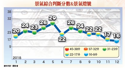 最後,關於經濟獨強於全球的美國,十二月製造業PMI由前月的五九.三陡降至五四.一,創二○○八年十月以來最大降幅,其中新訂單指數五一.一,創二○一四年一月以來最大降幅,這都是警訊。眾所周知,消費占美國GDP增長的七成,其中最大的支柱「房地產」也快速降溫。根據全美房仲協會(NAR)數據,十二月美國成屋銷售經季調後的年率為四九九萬戶,創二○一五年十一月以來最低,月減六.四%,年衰退達一○.三%。由於成屋銷售占全美房市交易達九成之多,房市動能持續減弱,也將拖累經濟成長力道。營收數據保守看待 指數萬點風險增加如前所述,現階段全球經濟環境面臨相當大的增長難度,在這樣的背景下,台灣第一季的出口也面臨嚴峻的挑戰。根據國發會日前公布的最新資料,十二月景氣綜合判斷分數比前月再掉一分成為十六分,掉入藍燈區,這是二○一六年四月(三三個月)以來的首顆藍燈。更讓人擔憂的是領先指標連跌七個月,不但跌幅擴大,且跌破長期趨勢,不如長期平均值水準。因此,短期內不可能馬上就恢復為綠燈,這確實是個重大警訊。農曆年後即將公布上市櫃公司的元月營收,這是影響年後走勢的重大因素,尤其是加權指數已來到萬點關卡,要再上攻更需要基本面數據的支持,可惜的是營收數據目前研判並不樂觀。主要原因仍是十二月台灣外銷訂單不佳,金額四三三.八億美元較前一年同期衰退一○.五%,創二○一六年五月以來最大跌幅,而十二月外銷訂單影響的是一~二月的營收,整體上市櫃公司一~二月的營收不會好,難以期待。再加上經濟部更進一步預估一月台灣外銷訂單約莫三七○~三八○億美元,將較去年同期衰退十一.八~十四.一%,衰退幅度更加擴大,代表二~三月整體營收更差,這等於直接預警台灣二○一九年第一季都不必期待基本面的利多了。失去基本面支撐的台股,上攻的難度更高。至於下檔較合理的支撐區會落在什麼範圍呢?從基本面的角度而言,由於台灣對外貿易依賴度高,景氣熱度可以外銷訂單位階來衡量;按照比對,二○一五年一月的外銷訂單為三九○.三億美元,年增率八.一%,當年一月的指數高低點為九○四三~九五二三點,二月的高點為九六九九點,是一個相對參考值。就基本面的角度觀察,我們再次強調目前加權指數的上檔空間有限。