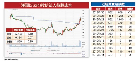防禦型策略首選生技與軍工 漢翔業績將雙位數成長既然指數上檔空間有限,現階段選股策略儘量選擇受景氣循環波動影響相對小的產業。過去多次提到的生技族群是典型代表,除了具剛性需求的生技股值得持續追蹤以外,受惠於政府擴大支出,且具有高度進入障礙的軍工族群也有異曲同工之妙。例如漢翔(2634),為國內航太科技領導廠商,營業項目為航空器及其零組件之製造及維修,產品應用分為民用業務類、國防業務類、科技服務類,各領域比重約為五五%、四四%、一%。漢翔為國內航太科技領導廠商,位階為Tier2,國際民用飛機大廠Boeing、Airbus,及引擎大廠GE、RR均為其客戶。目前民用業務部份,在單走道客機逐漸成為交機主流之下,預估Leap引擎零組件出貨比例將再提升至七○%,至二○二○年舊引擎CFM 56零組件將進入淘汰期,新引擎零組件出貨成長,將帶動二○一九~二○二○年成長性;預估二○一九年Leap零組件出貨將更趨順暢,且TACC先進複材中心營運學習曲線提升,也可改善整體營運效率,預估民用業務在二○一九年佔比將再提升至五九%,民用業務可成為二○一九年帶動營運成長主力。國防業務方面,後續銜接國防高教機專案,將提供漢翔長期業績穩定成長。毛利率改善方面,二○一八年受到原料價格上漲且部分原料缺貨,加上新專案產能利用率較低,造成毛利率下降至一三.二%。展望二○一九年,缺料狀況將獲得改善,且ECMC及TACC營運效率有所提升,毛利率可望拉高。法人預估二○一九年營收約三○三.三億元,稅後淨利約二三.二三億元,年增一○.二%,EPS估約二.四七元。
