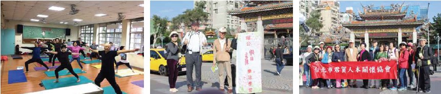 台灣長輩易關起門來過退休生活,以美國為鏡,期待能為長者帶來更多充實的老後想像。打造台灣銀髮社團,給長者一個歸屬感,去除負面的刻板印象。所以「君賀人本關懷協會」成立「假日文康樂活學堂」鼓勵長者的社會參與健康促進。該學堂上課地點在瑠公國中,108年第一期(1-4月)即日起受理報名。報名地點:一、瑠公國中:假日樂活學堂辦公室輔導長李淑惠,電話0932-393-300。二、麗中藥局:台北市福德街217號,電話2759-4416。三、君賀人本關懷協會祕書處,台北市羅斯福路2段70號7樓之4,聯絡電話2327-8616。該協會每周六、日尚有養生學堂、友善農耕、電影欣賞、書法班、銀髮族瑜珈…等多項課程。協會還特別規劃共餐樂的活動,藉由共食,讓長輩結交朋友、分享經驗,用歡樂氣氛促進食慾和營養吸收。健康與快樂是需要投資與學習,放棄不健康的習慣永遠不嫌遲。 「我很老,可是我很溫柔」,當「老」字倡導的正向而響亮,無法逆的晚美人生,將可逆勢看漲,迎接老世代的新靈魂,創造銀髮新產業,打造台灣樂齡理財島,不信青春喚不回,只看您敢不敢勇於挑戰,接受各種樂活課程。理善國際關懷協會致力推動「理財、理善、理健康」,成為SMART有智慧的行善者,用公益平台支持善行。