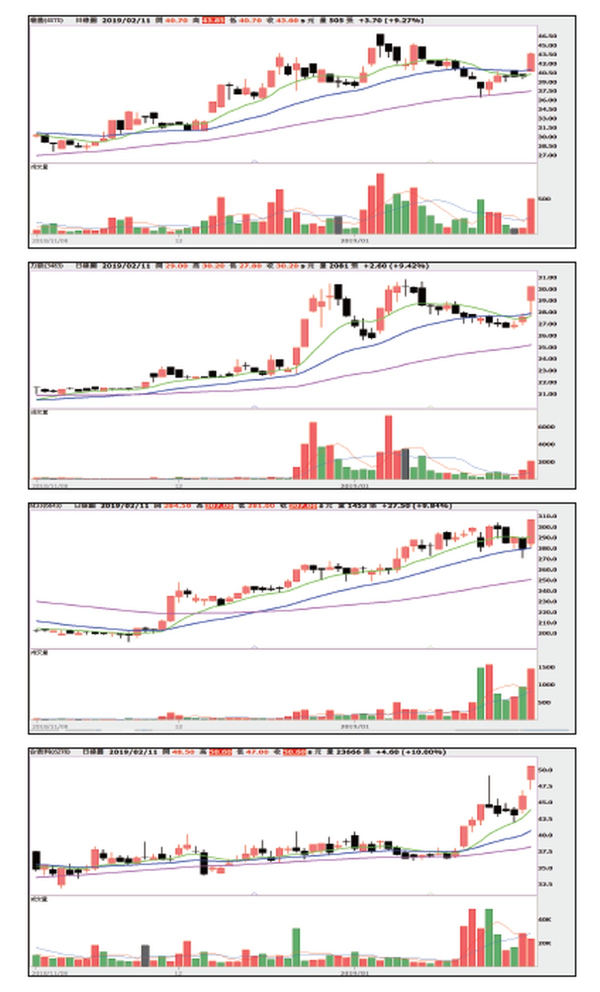 台股經過十一天的封關日,在二月十一日首開紅盤大漲百點,其中以生技及5G族群表現最為兇猛,在當日最強的生技股早盤強勢漲停的美時(1795)帶動下,訊聯(1784)、大江(8436)、瑞基(4171)、五鼎(1733)、基亞(3176)等都有漲幅四%以上的表現,而5G類股卻為各自表現的漲勢,如SMT表面黏著技術的台表科(6278)、散熱模組的雙鴻(3324)、矽智財IC設計的M31(6643)等漲停,更有多家泛5G相關題材皆是強勢走勢,意味著金豬年開春後行情是非常有機會的,重點是成交量也擴增到一三一九億元,是很好的價量齊揚的實在表現,為後續的行情打下非常好的基礎。若行情只有好一天,絕對不是諸位投資人所樂見,大家的關注焦點會放在到底到元宵節這段時間,做多會不會是比較會賺、比較穩當的格局。所以彭哥本期幫大家解析,有哪些族群及標的是比較有機會向上發動的。向上發動或上漲機率高的股票,多半都帶有股價站上短、中、長均線週期,且成交量也會有隨價漲遞增的現象,所以彭哥整理出會漲到元宵節前有機會發動的標的給大家參考,標的如下:「瑞基(4171)、德英(4911)、基亞(3176)、尼克森(3317)、力致(3483)、晶心科(6533)、凌華(6166)、M31(6643)、美律(2439)、臻鼎-KY(4958)、穩懋(3105)、瑞儀(6176)、大中(6435)、眾達-KY(4977)等」,都是彭哥認為不錯的標的,均有站上短、中、長均線的一個現象,唯盡量避開進場時之成交量出現在超出這半年內的最大成交量,因最大成交量常伴有換手易位之現象,在短線上視之為過熱,就不是非常棒的進場位置,提供給各位參考。再來去年火紅的矽晶圓及被動元件,除了嘉晶有跨足功率式放大器在當日收強勢漲停外,其餘的環球晶(6488)、合晶(6182)、中美晶(5483)的股價表現均為小漲作收,顯示出買盤力道偏弱之外,已不復去年主流族群的焦點,需要盡量把資金拱回主流才能再創股價佳績,只單靠業績題材無法完全吸引資金回流。而被動元件的表現更是讓人失望,明明已做好股價結構多頭走勢,卻完全無法吸引資金主力,猶如麻將遊戲中明明聽牌聽三個洞且都沒出現,卻摸不到自己需要的牌那種無助感。而股價最怕被當作棄婦看待,現在最爛最臭的被動元件就變成一攤死水,是需要一段時間的繼續沉澱,並且需要有強勁的題材才能點起反彈,彭哥提醒可以用比較積極性的股票取代,才能夠盡快拉開價差賺獲利。總結以上的行情表現,就是以生技、5G為強勢標的,弱勢族群就是被動元件、矽晶圓。要賺大錢必須掌握趨勢財,做股票若只想要賺便當錢是絕對賺不多的,唯有報酬率取勝才能成為股市大贏家,提供交易經驗給大家參考,最後還是祝各位投資人豬年投資順利大豐收。圖