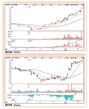本周精選產業基本面前景展望透明度高,營收成長動能增強,外資、投信搶收籌碼,股價有機會走出波段漲勢鏢股:東碩(3272)、兆利(3548)、永新-KY(4557)等。東碩有機會新增美國通路商客戶東碩(3272):一月營收五.二○億元,月減一五.五○%,年增率高達九四.三○%。東碩二○一八年十二月營收受惠中國品牌廠客戶對資料傳輸連接埠「Thunderbolt 3」規格產品拉貨需求強勁帶升,創歷史新高,第四季整體營收一六.○五億元,季增一三.七六%,年增率高達九○.六五%,同創歷史新高。東碩為筆電擴充基座(docking station)製造廠,目前擴充基座占整體營收達八○%以上,全球十大NB品牌廠有八家為其客戶。去年下半年開始,東碩即面臨上游零組件缺貨壓力,且進料報價為先前即與供應商議定成約,又不易反映成本上升壓力給客戶,拖累毛利率下滑,現階段仍有部分上游IC原料缺貨問題未見改善,多少壓抑毛利率表現。另外,上半年將陸續開始與客戶商談新產品供貨訂單,同時啟動因應目前成本條件下,產品出貨報價調整機制,預估下半年成本漲升壓力有機會減緩。法人表示,東碩現有客戶第一季下單拉貨動能仍具一定強度,整體有機會維持去年第四季一六.○五億元高檔水位。預期Thunderbolt 3連接埠規格換機潮可望持續,加上有機會新增美國通路商出貨客戶,預估東碩今年整體接單、營運表現展望正向。法人機構預估東碩今年營收五二.三九億元,年增率二.○三%,EPS二.六五元。兆利MIM零件攻可摺疊手機市場兆利(3548):一月營收五.二四億元,月減七.六六%,年增一四.八七%。樞紐廠兆利去年筆電樞紐營收雖見到年減,但Monitor樞紐營收成長向上,第三季Monitor樞紐營收占整體比重已突破五○%,超越筆電樞紐,第四季更持續升高達六○%。由於Monitor出貨旺季大多處第三季,兆利推估,主要因受客戶擔憂美中貿易戰變數,提前於去年第四季大舉拉貨,帶動兆利去年十二月合併營收達五.六八億元,衝上全年高點。兆利現有出貨品項主要有NB、Monitor、AIO(All in One)用樞紐,不同應用產品別亦區分細目,如NB樞紐又分為MIM(Metal Injection Molding,金屬粉末射出成型)、三六○度、中空等不同設計形式,值得注意的是,MIM零件未來於可摺疊手機零組件市場也將有機會占得一席之地。市場傳言,兆利已開始與中國相關手機零組件供應鏈廠合作開發新品,雖尚處於初期概念機階段,但兆利看好可摺疊手機趨勢,認為此產品將成為樞紐未來發展突破重點。可摺疊手機的樞紐耐用挑戰,主要評估重點為面板的耐磨性、彎曲度。由於手機日常使用開關次數遠多於NB,先前NB樞紐耐用通常僅要求二至三萬次開關次數,手機則要求多達十至二十萬次,所以很有可能需使用到MIM零件。法人機構指出,就主要樞紐廠現有產能規模、開發能量,目前以新日興、兆利較有希望領先受惠可摺疊手機市場趨勢。另一方面,全球NB去年下半年之所以旺季不旺,主要受英特爾CPU缺貨影響,法人機構認為,由於去年NB整體出貨量基期相對低,如果CPU缺貨影響有機會於今年上半年逐漸鈍化、下半年恢復正常供貨,預估兆利下半年出貨動能有望受惠NB出貨量恢復正常水準而增強,如此一來,兆利今年整體NB用樞紐出貨量應不致少於去年。整體而言,預期兆利今年營收仍有機會維持去年水準。法人機構預估兆利今年營收年增率力拚正數,全年營收五四.九七億元,EPS六.○七元。永新-KY新產品出貨大增永新-KY(4557):一月營收一.五八億元,月減九.二一%,年增一二.八四%。永新-KY是北美第一大新品剎車總、分泵廠,隨汽車保有量不斷增加,永新-KY剎車總、分泵市占率持續成長。去年第三季起,每月卡鉗出貨量重新回到一萬個,後續有望向每月一.二萬個推進,永新-KY指出,如果全產線皆加入投產,單月最高總出貨量將可大幅增加達二.八萬個。另外,永新-KY亦已建置兩座剎車片新廠,同時包含四一三副製造模具,去年已開始小幅貢獻營收。永新-KY目前亦與南美客戶洽談相關剎車產品大量訂單,如果洽談成功,將成為今年營收主要成長動能之一。永新-KY表示,全球汽車總泵、分泵主要生產區域,幾乎集中於中國,一旦中美貿易戰持續,關稅成本拉高,剎車產品中國廠也將只能被迫向北美客戶提出漲價要求。尤其歷經中國新一波環保政策出台調控產能規模後,相關產品供應商數量日趨減少,料將有利永新-KY後續接單。永新-KY表示,新產品卡鉗模具量、出貨量正雙雙大幅成長,目前已完成開發的卡鉗模具達四二八個,同時有八十五個品項開模中,今年預估再新增一九二個,年底總量預估將達七○五個,可接單卡鉗售後服務(AM)市場車款將大幅擴增,預估有望一躍而成今年營收成長動能最強主力業務之一。法人機構預估永新-KY今年全年EPS六.○一元。