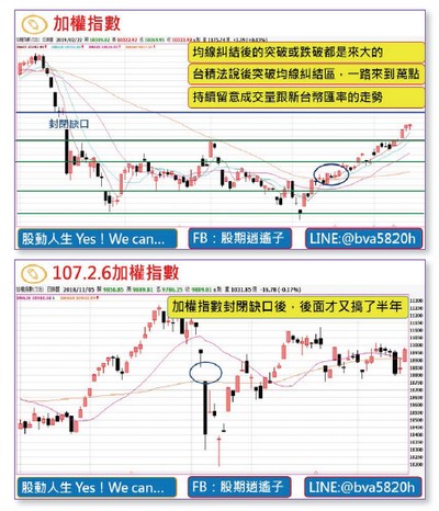 在周刊、群組我們多次提到加權指數去(二○一八)年十月十一日的跳空缺口很重要,缺口封閉,空頭才沒戲唱,去年二月六日的缺口就是因為封閉了,後面才又走了半年的多頭行情。有多少證據,講多少話我們絕對不會在一一○○○叫你做多(空),一萬點叫你做多(空),九千點也叫你做多(空),跌到八千點還是叫你做多(空),在操作上,我們都是看市場給我們什麼訊號,我們再跟著市場的訊號,調整我們的持股多空水位!去年十月市場崩跌,我們賺了一千二百點,在周刊、群組我們一再呼籲這個盤很危險,反彈你要站在賣方,甚至勇敢做空,那時的空單可說是遍地黃金。而加權指數崩跌橫向整理了三個多月後,今年一月中我們跟大家說加權指數短中期均線即將開始糾結,而均線糾結後的突破或是跌破都是大方向的開始,多空分水嶺為台積電的法說,在台積法說利空出盡後,指數突破均線糾結區,搭配外資的倉位,指數有機會再挑戰萬點,這一波反彈,包括全球股市,有追蹤我們群組、看我們文章的投資朋友,都知道主要是因為兩件事往正向發展,中美貿易沒有進一步交惡,以及聯準會的鴿派行動!國際股市、外資倉位加權指數在今年二月二十二日收盤價為一○三二二.九二點,即將來到密集套牢區,開始面臨缺口的反壓區,在這個位階,震盪難免,但震盪過後,還是要偏多看待,這裡還不到看空的時候,以目前國際股市的氛圍,外資偏多的倉位,只要川普沒有驚人之舉,震盪過後還是可以擇優選股進場,後續得觀察成交量以及新台幣匯率走勢,量滾量方式,才有機會封閉缺口!從台積電股利政策,看選股方向往年的第一季都是所謂的本夢比、吹牛行情,市場聚焦在營收持續創新高的個股,也會開始留意公司宣布的股利政策!新版公司法修正後,只要公司與股東約定好,現金股利的發放,可以改為每半年配息,或是每季配息,台積電日前宣布其股利將改為每季配發,市場上多正面看待,事實上逐季配息,在國外已行之有年,這樣的做法,將吸引退休基金、壽險機構等保守基金增加持股,有助於個股籌碼的安定,逐季配息亦提高複利的效果。根據國外財務經濟學實證研究,公司股利發放頻率從一年提高到四次,平均股價淨值比提高到一.五八倍,同期間股價表現打敗同產業指數勝率高達七成,隔年公司的股東結構,機構投資人增加了七.九六個,投資朋友不妨開始留意個股上的股利政策!更多的即時多空訊息,歡迎投資朋友加入我們的群組。
