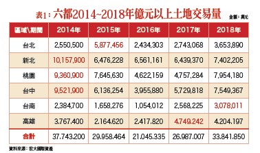 宏大國際資產統計二○一四至二○一八年,全台六都成交在上億元以上土地交易,顯示自二○一四年高點的三七七四億元後,連續下滑二年,低點在二○一六年交易只約二一○四億元(該年房市移轉棟數創二四.五萬棟的近期最低量),之後才逐步回溫(表一)。尤其二○一八年大幅提高到三三八四億元,土地交易似乎呈現止跌回升跡象,也無怪乎最近大同尚志資產二筆土地標售,在新北市土城區與台北市長安東路的土地,都分別由和碩(茂德)及興富發以幾乎創新高的價格取得。建商愛買的四種土地陳益盛指出,其實土地交易量原本可能更高,近五年來房市雖大致呈逐年下修走勢,但房屋的原料「土地」卻相對議價空間較小,呈現「房價下跌、地價不跌」的現象。陳益盛以近年媒合多筆土地的經驗及統計觀察表示,除了一定的土地規模外,建商較為青睞的開發標的有四大類,分別是土地坐落距離捷運八百米內、具有重大建設或題材周邊土地,及河岸或公園景觀等,以及具有商用投資開發價值的地段等,才是建商較為積極尋求的開發標的。而土地交易熱度回升,信義全球資產統計近半年(從二○一八年第四季到今年第一季)的買家來看,以前只買「建地(過去房子好賣,獲利較快)」,但現在連可蓋商辦或廠辦大樓的工業用地,都列入獵地範圍(表二)。信義全球資產顧問部經理王維宏表示,台灣房市自二○一四年急凍以來,不少建商都發展多角化經營,過去幾年,跨行至飯店業是一門「顯學」,與此同時,也有不少建商跨向百貨商場,但近幾年又發現,有朝向興建廠辦大樓或商辦大樓的趨勢。目前已投入飯店業的建商,包括國建、太子建、日勝生、宏國、皇鼎、皇翔、甲山林、鄉林、亞昕,以及規劃中有三個飯店案的興富發,璞真建設在台中的洲際大飯店案,至於投入百貨商場的建商則有冠德、日勝生及亞昕等。第一季土地交易衝新高