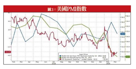 而美股三月二十二日的重挫,有一部分原因就是這種倒鉤現象,把投資人從縮表停止、升息停止的熱情中拉回現實。另一個造成美股大跌的原因,就是PMI。美國三月PMI(採購經理人指數)數據繼續下滑,製造業PMI(見圖三綠線)初值創二○一七年六月以來新低,雖然數值都還在五十榮枯線之上,但依此趨勢發展下去,跌破五十變成衰退不是不可能的。【四月操作,能走多遠算多遠】經濟成長時,是想走多遠就可以走多遠;反之有衰退隱憂時,是能走多遠算多遠。對於四月行情,姑且不論什麼「清明變盤」的玄學或統計說法,單就經濟數據本身,筆者是很難樂觀的。是以對指數的看法,仍會以B波反彈來臥薪嘗膽、自我提醒一番,正所謂人無遠慮,必有近憂。操作面上,基於投信三月季底作帳結束,漲多個股若四月初回檔加深,代表被棄養的可能性提高,這些個股橫跨各個族群,不一一點名。再加上新一波股東會前的停資停券潮啟動,也勢必影響大盤量潮,並連動到選股策略。針對「無基之彈」下「有機可趁」的選股策略,筆者會建議以週線位階低、日線第一季整理過、前波三大法人在手籌碼少、今年股息殖利率超過三%以上這些原則來著眼。而之前提過的TESLA LED燈供應商「聯嘉」、電池供應鏈「美琪瑪」、最大的學名藥代工廠「保瑞」、景氣成長及旺季來臨雙效應的半導體材料股「崇越電」等,都符合上述標準。
