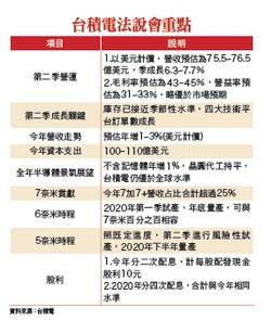 台股經過一週仍然維持在相對高檔,守住月線,台指期安全轉倉,接下來對於台股的看法筆者還是相對保守,除了上週所提到的技術面、籌碼面以及基本面的因素外,主要還是來自於台積電法說會的內容,筆者曾提到台積電這次法說會重點有以下四點:(1)資本支出,(2)七奈米良率,(3)客戶訂單持續性,(4)庫存水位。同時,台積電公布了對於第二季的財務預測,本次筆者將粗略地預估台積電今年全年營收,先把結論寫出來:台積電今年營收恐怕很難超乎市場預期。全年營收仍偏弱勢首先,筆者預測台積電營收的方法是把過去台積電對外評論業績展望的說法拿來建立出全年財測數字,主要有幾個重點:(1)第二季營收區間:估二三二九至二三六○億元,(2)第二季開始營收季季高,(3)估全年與去年營收相仿。抓住這三個重點,筆者利用第二季給出的營收區間的高標二三六○億元當成是預估基準,再參考去年第二季至第四季營收的季成長幅度約為一一%的QOQ來計算,因此,筆者可以得出,台積電第三季營收為二六一九.六億,第四季營收為二九○七.七億,所以全年營收是2187億+2360億+2619.6億+2907.7億約等於10,074.3億,若與去年營收為10,314.7億元相比,則今年營收YOY-2.3%,約略可以符合今年第一季台積電給出的YOY±5%的目標。建立自己的比較標準