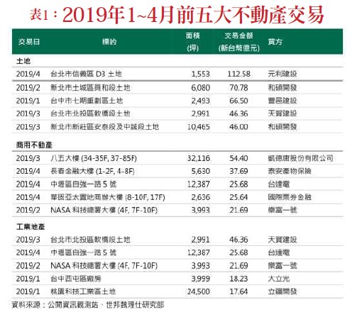 台灣股市飽受中美貿易大戰的影響,指數忽漲忽跌的,讓投資人心情好像在搭雲霄飛車般上上下下,不過,台灣商用不動產的交易熱度,不管是市中心的商辦交易或租金行情,或是工業地產的交易,都明顯轉好,就連建商都看好,將推案重心轉進商辦市場。台商回流 商用不動產轉夯世邦魏理仕(CBRE)台灣董事總經理朱幸兒表示,台灣不動產歷經兩年多的修正,自去(二○一八)年下半年起出現曙光,商用不動產市場從今年起呈現百花齊放的盛況,特別是工業地產,包括廠房、廠辦及工業用地,為整體不動產市場注入強心針。世邦魏理仕發布今年一至四月的台灣商用不動產及土地總交易金額達新台幣一一九九億元,年增率為七一%,其中工業地產(工業土地、廠房、廠辦)表現強勁,成交金額達新台幣二八一億元,年增二五%,且與去年同期相比,更大幅增長了一六一%,反映出許多重量級台商已陸續回流置產。朱幸兒表示,二○一八年受到全球政經情勢影響,加上中國內需增長放緩、企業營運成本走升因素下,許多台商已陸續將部分產業遷回台灣,強勁自用需求有效推升了工業地產交易,當年度廠房及廠辦成交金額達五八五億元。而在今年前四個月的一一九九億元中,因自用需求而購入的交易金額逾三四六億元,佔總交易的二八%,顯示不動產市場動能有賴企業自用及產能擴張而獲得支撐,亦反映全球政經情勢動盪下,台商積極回流的證據。世邦魏理仕台灣研究部主管李嘉玶指出,隨著中美貿易戰升溫,全球供應鏈正出現巨大轉變,短期內也將為台灣帶來轉單效益,政府若能透過租稅優惠促進產業升級,吸引台商返鄉投資,將為國內工業地產市場帶來新氣象(表一)。台北市中心商辦竟缺貨