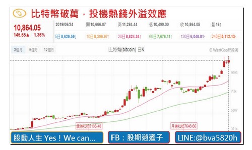 比特幣也因為避險需求,呈現大漲,價格重回一萬美元,加上臉書即將推出加密貨幣,一時之間加密貨幣再度成為市場的主流,市場上的資金投機熱錢,似乎不擔心加密貨幣價格的暴漲暴跌!全球十三兆美元負利率公債+各國央行頻頻降息+弱勢美元,投機熱錢無處可去,從這些資金PARKING在加密貨幣來看,投資熱錢正在蠢蠢欲動,後續外溢效應值得留意,若債券資金進一步流出,那怕只是流出一兆美元,這個盤都會變得不一樣,市場似乎正在準備營造今年的最後一波高峰,債務灰犀牛,泡泡什麼時候破,對現在的熱錢來說,就不是這麼重要了!價格最大經濟數據衰退,即使行情看得再壞,空單也得尊重一下六月十九日這根紅K,我們在操作一向是很有紀律的順著市場趨勢走,行情在季線這多空交戰,研判下周中美貿易戰後,將會有比較明確的方向,最後一波的高峰或是向下的主跌段,我們都準備好了,就等投資朋友加入我們的群組─「股動人生」。