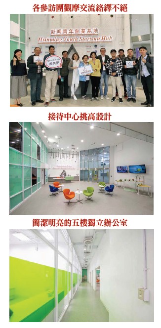 按新明青年創業基地係將廢棄電影院、舞廳等老舊建物資產活化,再注入創新元素,俾讓一些充滿創意蓄積能量又缺乏資金的年輕人,能夠結合志同道合的夥伴相互切磋,俾提早為未來的創業夢想鋪路。新明青創基地於今年獲得《2019國家卓越建設獎》金質獎肯定,該基地改造前為地下兩層、地上七層的老舊寙陋建築物,改建後地下兩層作為停車場,一、二樓作為市場使用,三至七層則重新規劃整修活化,其中三樓交由社會局整修,作為老人日照及托嬰中心,並由民間負責經營;四樓除作為身障重點服務據點外,另一側加上五樓則規劃為青創中心。新明青創中心也曾獲經濟部中小企業處補助兩千三百萬元,除增添重要設備外,也建置伺服器及雲端運算平台,目前共有十八家團隊進駐,個人會員二十二人,累積三十四位的就業人數,至於四、五樓的十四間辦公室也已滿租,並已成功媒合企業、大學、研究機構及創投機構與公部門進行合作二十五案,此外,更積極輔導新創團隊獲得三八三.二萬元的政府創業基金補助。