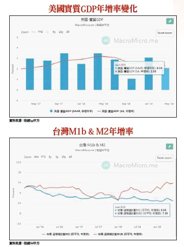 整體而言,第二季GDP初值上升且大幅優於預期,是受到消費者支出強勁所支持,然而投資大幅下滑,其中排除庫存去化的影響外,企業及住宅投資也都下滑,顯示房市及企業投資信心持續不足,投資不足雖然尚未傳導至就業市場,但終將成為未來的潛藏隱憂。台灣資金充沛 支撐個股輪動雖然未來美國經濟增長內涵潛藏企業投資不足的隱憂,但是在預防性降息的護航下,只要美股未出現大幅回檔之前,台股加權指數都能維持高檔區間整理。例如七月三十日,雖然OTC指數出現明顯的拉回,但加權指數也僅小幅回檔,代表權值股穩定度相當高。若以資金面的角度觀察,後勢仍舊大有可為;例如,日前台灣央行新公布的六月貨幣數據,M1B及M2年增率各為七.三五%及三.○五%,兩者差距擴大至四.三個百分點,創一○二個月新高;M1B與M2年增率差距擴大,代表資金調動轉換靈活,流動性充沛。目前M1B總額逾一八.三七兆元新台幣,M2逾四五.○四兆元,而六月活存餘額月增一七七五億元至十六.三四兆元新高,顯示,國內資金結構維持相當充裕的結構不變,也代表股市資金動能無虞。另一方面,台商回台踴躍,投資金額衝破五千億元大關,年度目標提前達陣,預計年底有一千六百至一千八百億元投資資金到位,而台商回台投資總額全年將向七千至八千億元邁進;長期來看,不只能明顯推動實體經濟,也將促使台股結構由外資主導,逐步向內資行情作傾斜。未來台股加權指數萬點將成常態,族群輪動之行情也將與外資逐步脫鉤,猶如台韓股市分道揚鑣一般。