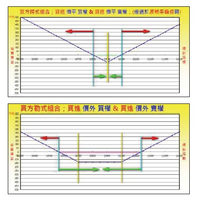 第三季全市場焦點,已從美中貿易戰轉移至美國聯準會下半年貨幣政策趨向,以及英國脫歐風險。可以預見全球資本市場下半年要面臨的重大「人禍」風險事件,很可能比上半年精采!預期風險將放大,即是提醒投資人要控制資金配置,以及入市前的風險規避,同時也要思考伴隨重大風險事件而來的潛在獲利機會。選擇權商品具有資金門檻超低,以及買方損失有限,短期有機會獲利達倍數以上的特質。但因為選擇權的買方、賣方權利義務不對等,財務計算與委託下單方式較期貨複雜,造成許多投資人即使看對市場的趨勢方向,也不見得能在選擇權市場獲利。就選擇權交易的買方部位而言,必須市場有大行情,譬如說幅度二%以上的單向趨勢,比較有機會賺到倍數以上的利潤。選擇權另一重大特質就是可以讓多空部位同時並存,但不會因損益互抵產生鎖單現象,單向的趨勢幅度愈大,這種買方複式部位獲利機率愈高,潛在利潤空間也愈大。即使看錯方向也無所謂,只要市場價格變動幅度放大,或是單向大漲或大跌,就有獲利機會。理論上,這種同時押漲又押跌的多空部位並存模式,應該可以帶來比較高的獲勝率,以及潛在的倍數利潤。因為市場走勢的變化,也就只有上漲、下跌、橫盤這三種而已。三種盤勢中,掌握了其中兩種,照理說勝率應該要大於六六%,是吧?其實不然,因為根據統計,全球七○~八○%的金融商品,在一年之中七○~八○%的交易日,幾乎都是震盪或區間整理的盤勢!所以若依盤勢分類的統計數據推算,同時押漲又押跌的選擇權組合,理論上大約是三○%左右!所以掌握趨勢以及市場波動放大的時機,就成了選擇權買方複式組合的獲利關鍵。一、指數選擇權的買方複式組合當預期市場將會因為重大事件而大漲、大跌,或是走勢將大幅上下沖洗時,可以採取選擇權的「買方勒式組合」或是「買方跨式組合」做為因應。這兩種組合都是同時買進看漲後勢的買權,以及買入看跌後勢的賣權,差別在於「買方跨式組合」的買權以及賣權,都是同一履約價,通常都是時間價值最高的價平買權與價平賣權。而「買方勒式組合」主要都是價外的買權、賣權為主。