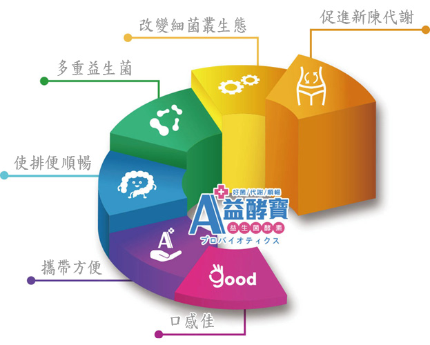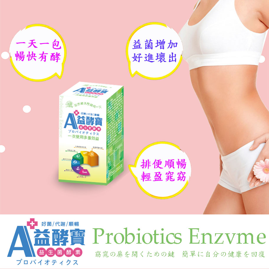 現代人生活及工作壓抑,尤其是工作一忙起來,就隨便買個外食吃,久而久之,也造成腸胃的負擔。隨著年紀增加,人類腸內的細菌,會慢慢減少好菌,並且增加壞菌,在日常飲食上常吃油膩外食及工作壓力、疲勞等,都會促使壞菌增加,導致許多慢性病找上你,所以適時的補充益生菌顯得更加重要。然而,市售的益生菌產品這麼多,該選擇什麼樣的益生菌才有效呢?【A+益酵寶】 一次使用,效益多多【A+益酵寶】是好運實業公司透過藥師及數位營養師共同研製,以蔬果酵素加上益生菌製成的營養補充食品。包裝成分來源嚴格品管把關,原料來自ISO-9001,HACCP等認證優良廠家,並結合高科技專利微生物發酵技術製成,讓您使用一次就能給予身體多重效益。「腸」保健康!益生菌+酵素 保持消化機能好「酵」率!為了讓長期生活作息不佳及外食營養攝取不完整的你,更能做好腸道保健,好運實業公司針對國人在腸道保健上容易忽略的酵素補充,特別研發出【A+益酵寶】,精選六十六種蔬菜、水果發酵,經專利微生物發酵技術保留蔬果中最佳營養價值,口味酸甜順口,每日輕鬆補充,幫助維持身體機能,維持健康好體態。另外,好運實業公司也建議,平時可從三方面著手:(1)養成良好且規律的生活飲食。(2)減輕酵素的解毒負擔。(3)減輕壓力並調整規律的生活方式。透過每天補充額外攝取的好菌(益生菌)+酵素的方式,來減緩身體酵素數量降低的速度,以及幫助每日規律排便。此外,在水分補充方面,好運實業公司何金珠總監也建議,養成每天持續補充約2000C.C.水量,讓體內新陳代謝更好,氣色更佳。而在食物挑選類別上,建議多吃蔬果類等高纖維食物,少碰甜食/油炸/高鈉/辣等刺激性食品,來幫助每天排便順暢,以維持健康的腸道機能。