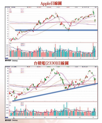 美國彷彿嫌現階段的全球經濟貿易情勢還不夠混亂似的,為了逼迫美國FED持續降息、擴大降息幅度,川普總統於美東時間八月一日上午,在其向來所慣常使用的文宣管道推特(Twitter)上,正式宣告將自九月一日起,針對中國其餘高達三千億美元中國輸美商品,加徵一○%進口關稅(尚未計入先前已遭美國加徵二五%進口關稅的二千五百億美元中國產品),市場解讀將因此對包含蘋果(Apple)在內的智慧型手機、平板電腦、PC/NB、電子玩具等消費性電子廠,造成後續一定程度的營運壓力,預料也將影響到它們於資本市場的股價表現。陸輸美三千億商品九月起加稅 重創消費性電子美企大廠受到川普突然宣布徵稅的系統性利空,造成美股四大指數八月一日、二日連續重跌回檔,道瓊工業指數更於八月一日盤中大幅下殺、回跌跳水幅度多達六百點,S&P 500、Nasdaq、費城半導體指數等,亦同步走出越過近期前波反壓高點、衝上彈升波段新高後,短線急速連續回檔修正。而這次「針對三千億美元中國進口製品課徵一○%關稅」利空衝擊的重災區,包括美股科技類股半導體代表性大廠蘋果、超微(AMD)、高通(Qualcomm)、賽靈思(Xilinx)、英偉達(Nvidia)等,八月前二個交易日急挫壓回。半導體大廠發布前景轉暗財測 客戶看淡後市 台積電恐遭拖累蘋果今年年度新機全年出貨量,迭遭市場分析師與外資法人機構看衰,預料這三千億美元課稅稅基產品中,將包含蘋果智慧型手機,而日韓貿易戰擴大,應用OLED面板高階智慧型手機,後市出貨量間接受「斷鏈」影響機會大,消費者恐減少年度新機購買量,新機上市後,蘋果iPhone手機全年出貨總量,恐怕連七千萬支的目標,都不易順利達標。如此一來,自然也將不利包含台積電(2330)在內的台股蘋果供應鏈後市。