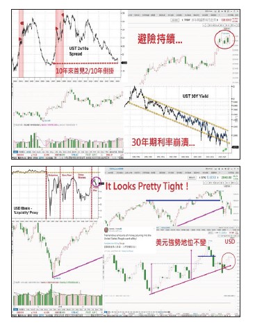 在八月十四日晚上道瓊下跌八百點,創下史上跌點紀錄,震撼全球金融市場,當天美股一開盤就重挫四百點,各大媒體都以美國二年期與十年期公債殖利率倒掛當成是本次股災原因,也引起市場上頻繁的討論。筆者以中性立場觀察這個事件以及市場所用來解釋的理由,得出三個看法:(1)道瓊點數創下歷史紀錄來到二萬六千至二萬七千點,跌八百點來計算跌幅也不過才三.五%,在美股跌幅史上還排不上前十,所以不用被嚇到。(2)股市會跌與流動性過度集中債市有關。(3)流動性過度集中債市才形成「短線」殖利率倒掛。大咖頻放話到底共蝦密?在那幾天裡有幾位市場大咖發表言論,分別是前聯準會主席葉倫、前前聯準會主席葛林斯潘以及新債券天王岡拉克,這幾位對於市場殖利率出現倒掛提出了一些看法,筆者分列如下:葉倫─殖利率倒掛並不代表經濟衰退;葛林斯潘─無論FED做什麼都阻止不了美國出現負利率(用殖利率倒掛來預期未來經濟衰退的始祖);岡拉克─殖利率將持續下跌,看好未來債市。這些看起來好像沒什麼邏輯或是信心喊話的發言,經過筆者推敲排序後就大致可以解讀:葉倫解釋的是「現在」當下的金融環境,葛林斯潘講的則是「未來」會發生的結果,而岡拉克說的則是面對未來的「操作策略」。達文西密碼解密全文所以,讓筆者重新解密這三個人的發言:「(葉倫)現在雖然發生殖利率倒掛,但要說經濟衰退還太早,要有更多的證據佐證,而且也不能排除是目前市場上避險情緒高漲,資金過度湧入債市的結果。(葛林斯潘)只是從歷史經驗來看,利率倒掛後的十二至十六個月內將有經濟衰退,而美國將會因為資金持續湧入債市而出現殖利率為負的環境。(岡拉克)至於面對未來即將步入負利率環境,債市仍將會是除了黃金之外相對較好的避險資產。」其實這三個人都在講同一件事,只是都沒有註明時間,當我們把這些發言重新排列組合之後,就會出現對我們了解金融市場有意義的訊息!因此,投資除了對基本面、技術面的掌握以外,時間才是能貫穿投資策略的真正的主軸!打造自己的時間寶石再拉回來說近期很多媒體都喜歡找存股達人、不敗教主等與大家分享如何存股,以及他們的存股成就,可惜的是策略雖然對,但時間卻是不太恰當,想要複製這些人成功的經驗,要先了解他們的成功背景以及條件,有人在分享時請投資人不管三七二十一就存下去,筆者很不以為然,這是不負責任的說法,考慮到未來一至二年股市腰斬機會大增,為什麼一定要現在,不等台股腰斬以後再存?這些人成功的原因無他:對的時間(存)以及抱的時間(長)!有機會筆者會在YouTube平台分享。總之,投資要成功,先把時間掌握對才能夠達到事半功倍的效果!否則不只花了時間,也多花了投資成本,身為小資族的我們是否更該多想想呢?
